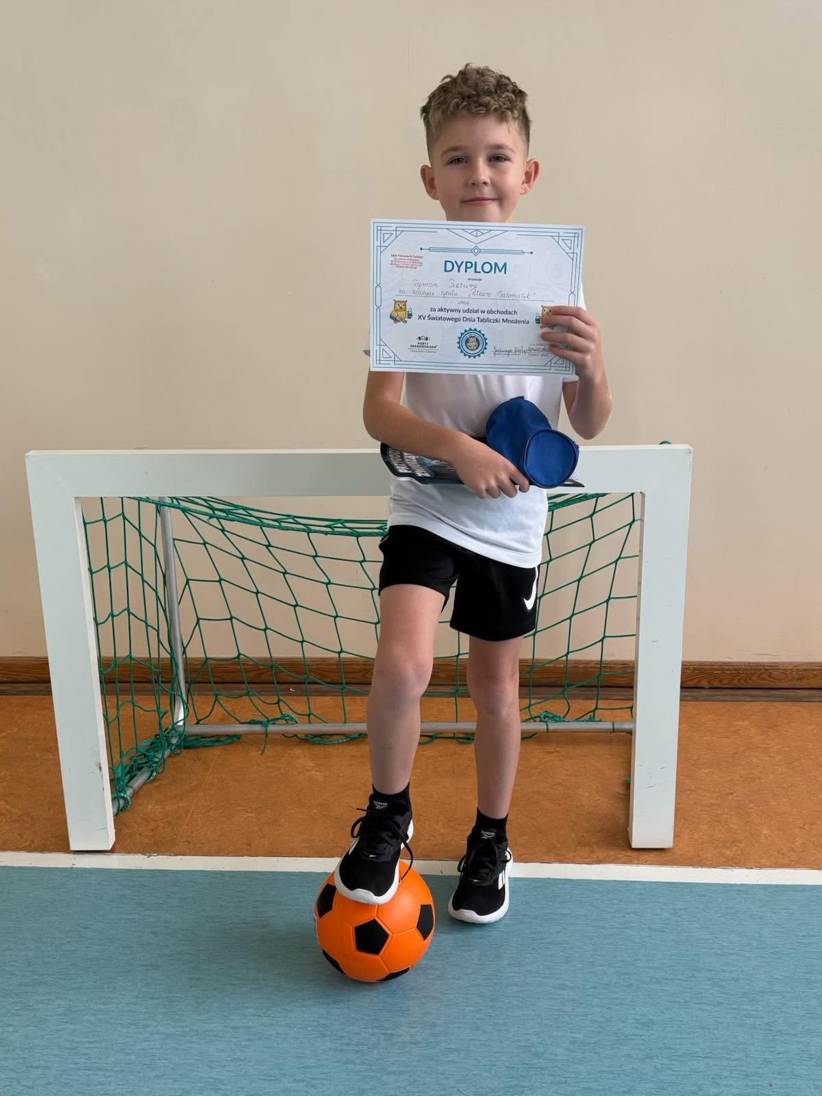 Mistrza strzelania bramek i mnożenia! Tutaj liczyła się precyzja zarówno w celnym strzale (prosto w światło bramki!), jak i w szybkim mnożeniu, bo przecież trzeba było mnożyć radość zwycięstwa! (to dowód, że matematyka jest królową sportów!) I tym razem udało się spośród wielu śmiałków wyłonić najsprawniejszego „Piłkarza Matematyka” - Tymona.