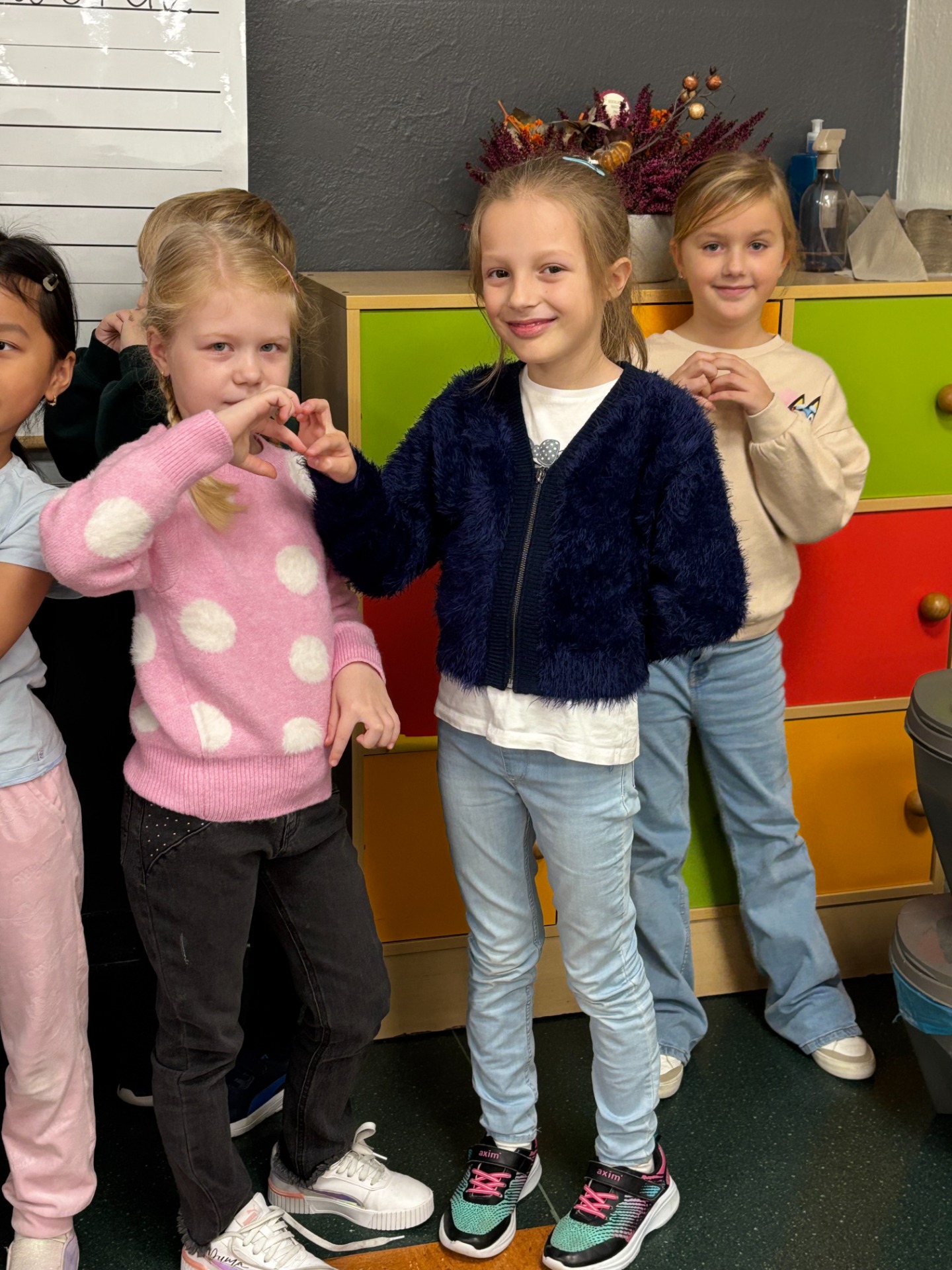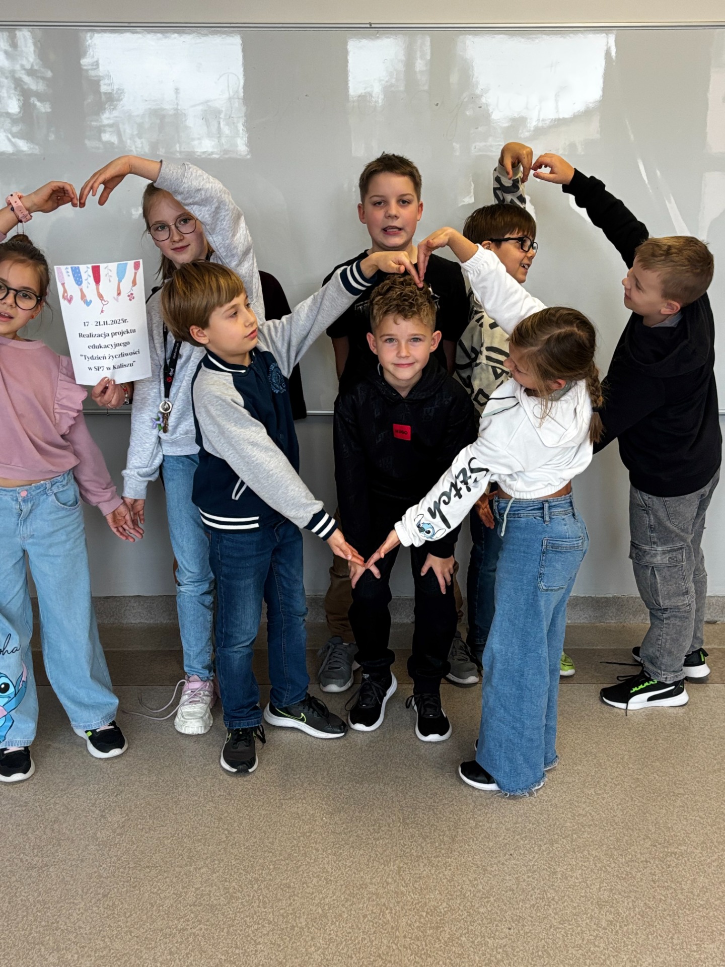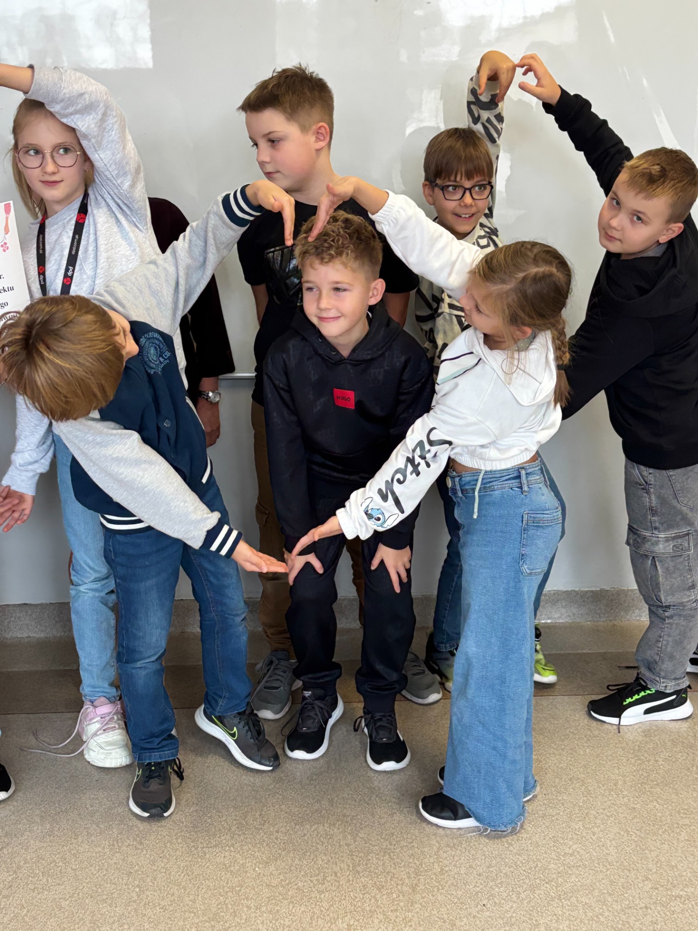 Ale prawdziwym klejnotem, który rozświetlił całą chwilę, okazało się czułe wyznanie w języku migowym! Uczniowie przekazywali sobie gest "KOCHAM CIĘ", udowadniając, że życzliwość nie potrzebuje słów, aby mówić głośno i wyraźnie!