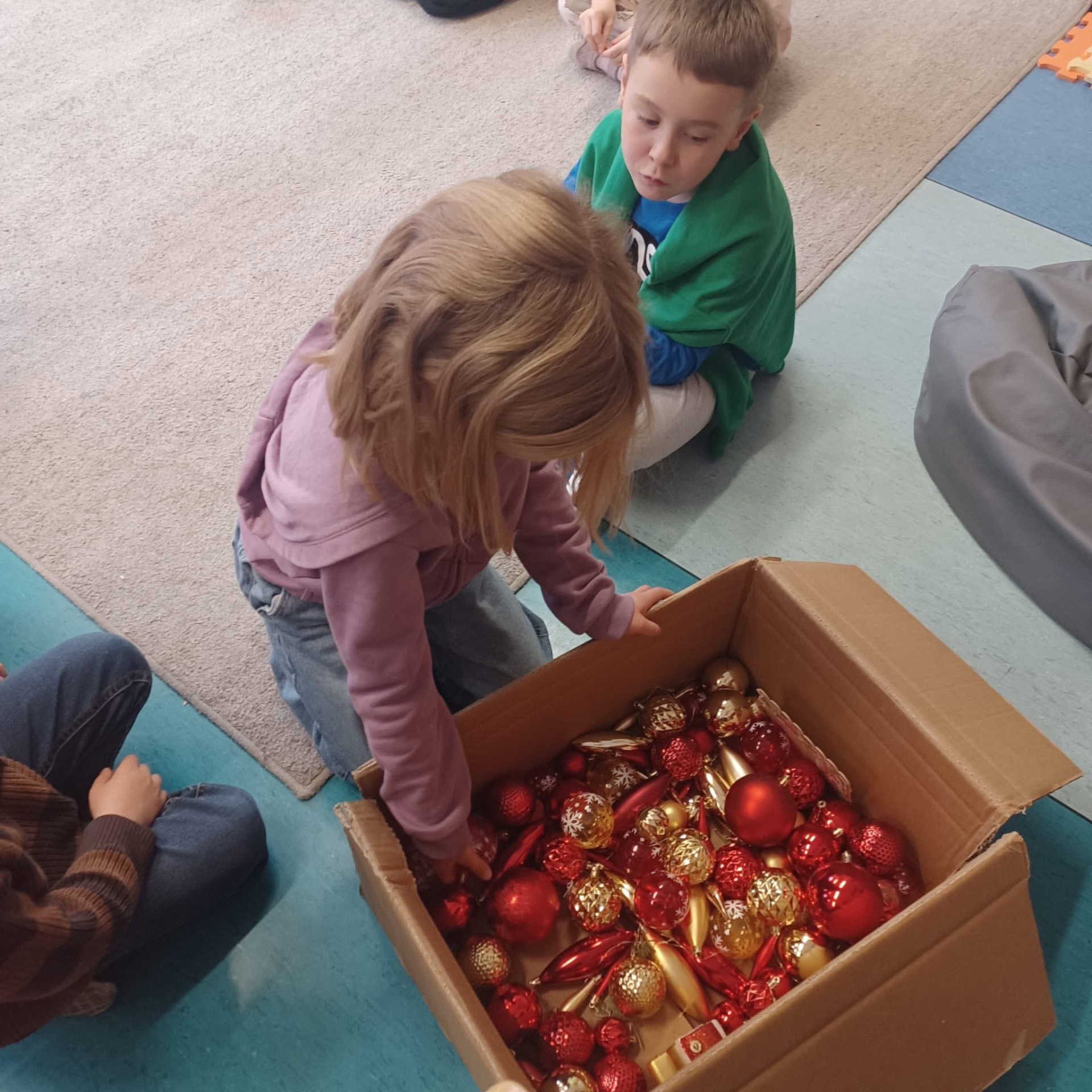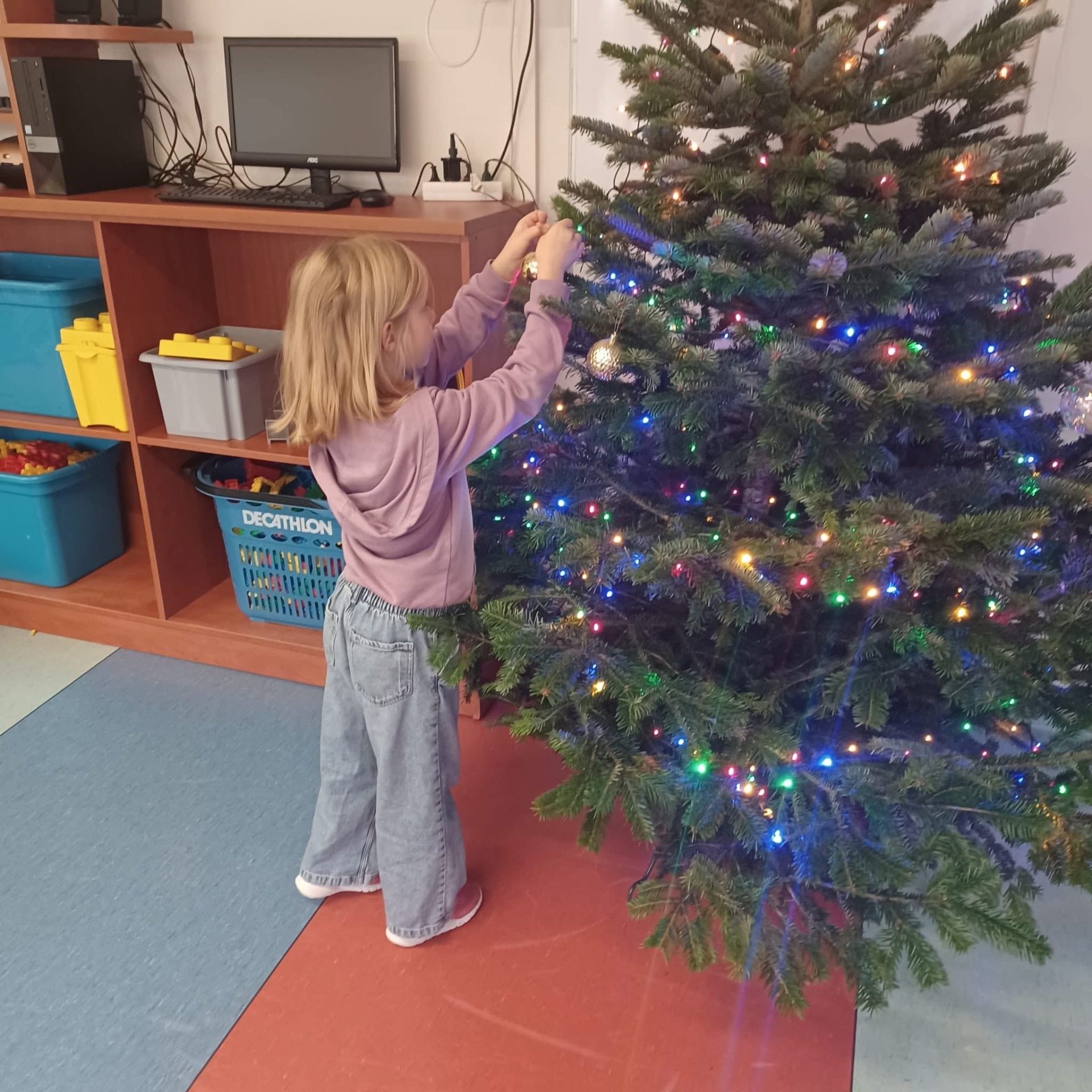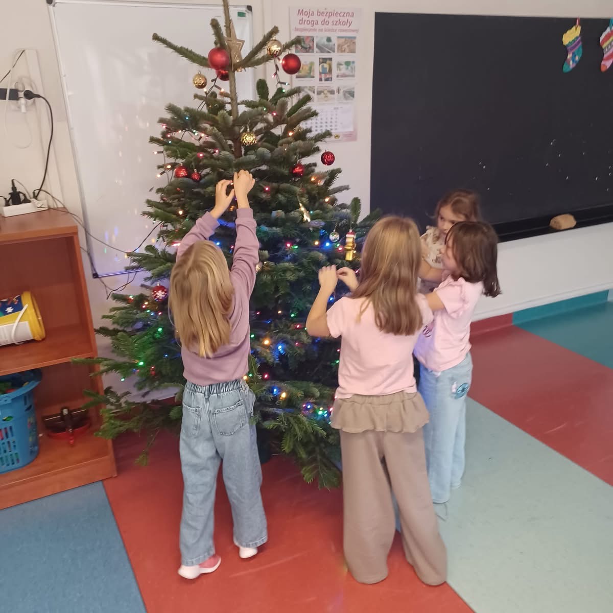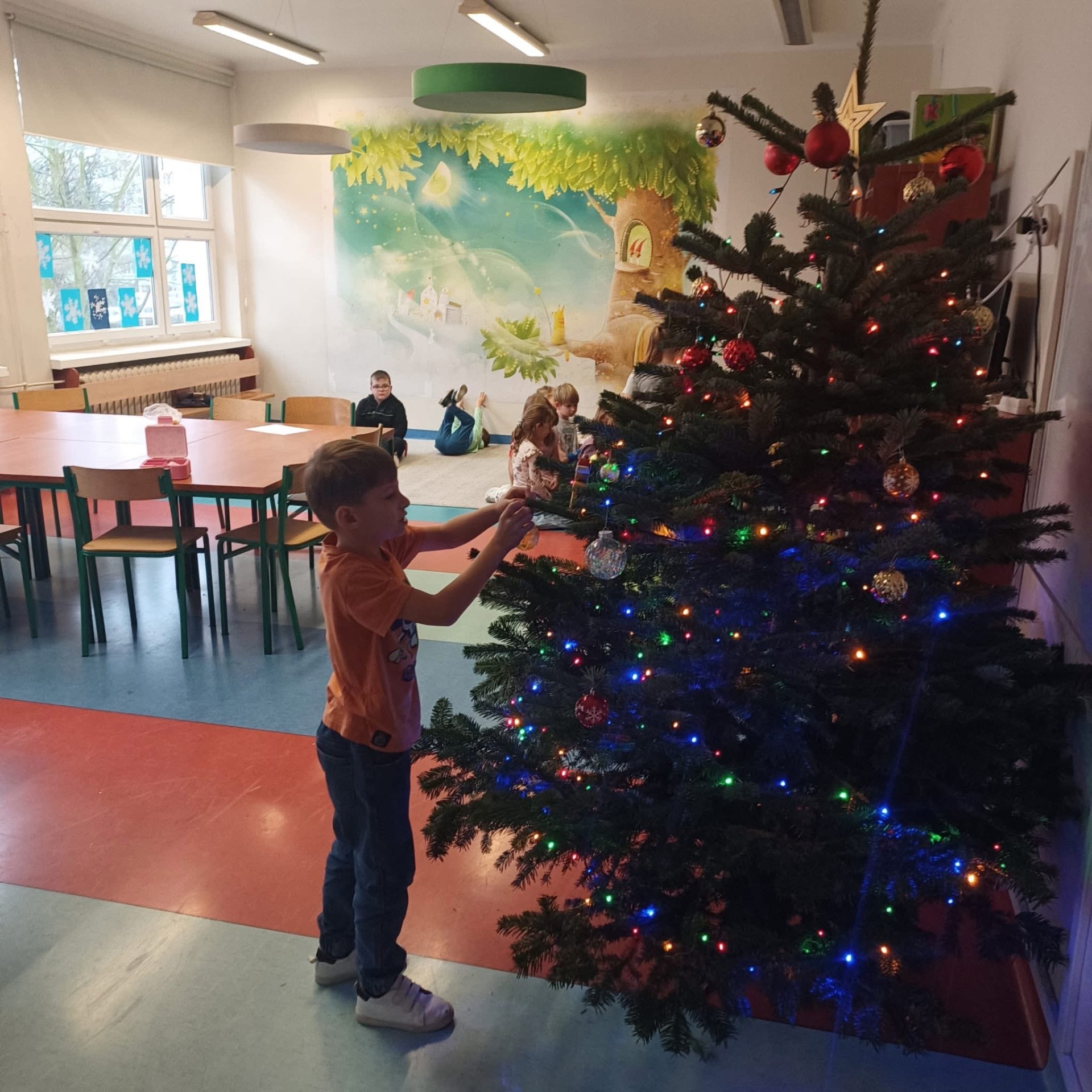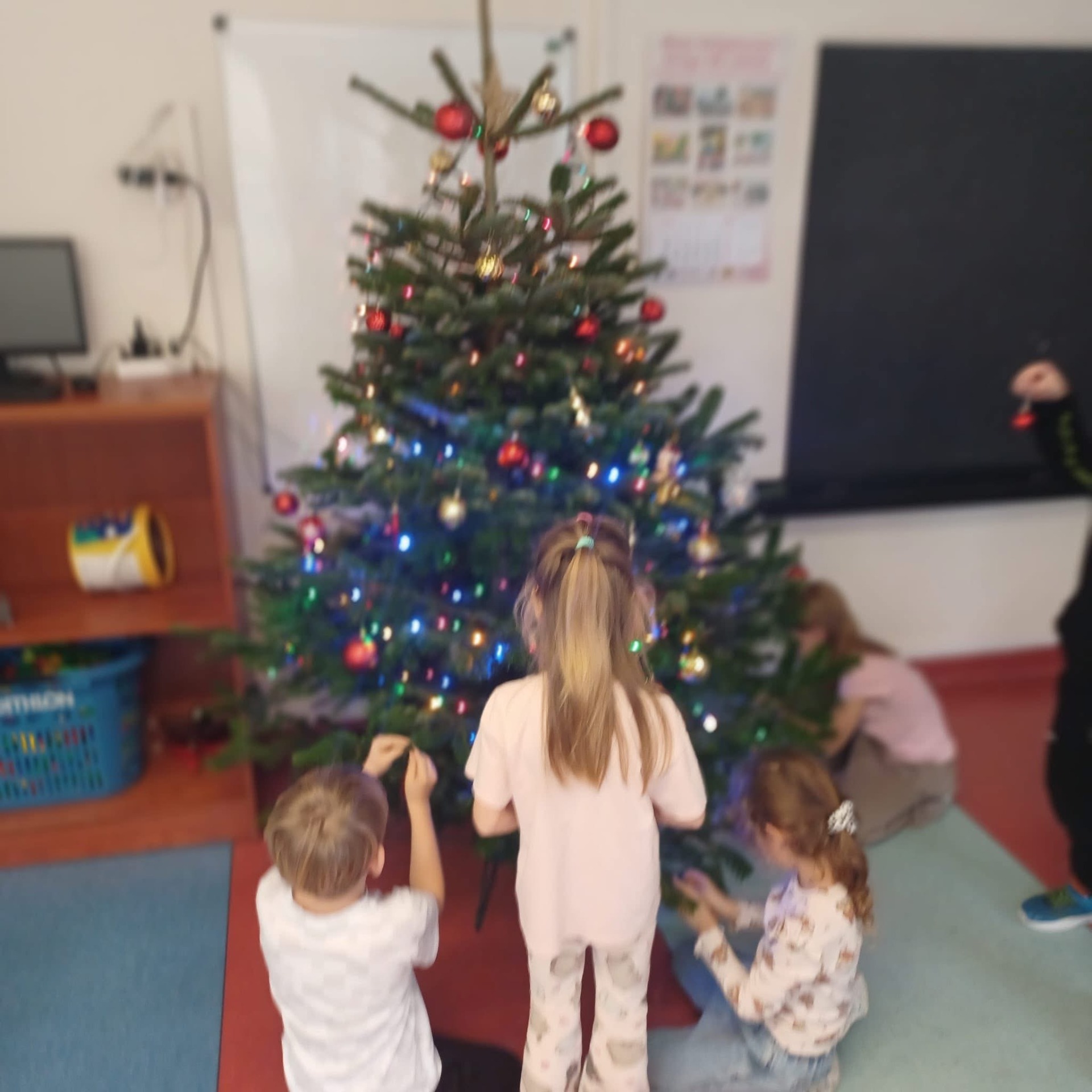 Nasza świetlica również spisała się na medal, a ich drzewko pachnie tak pięknie, że musimy pilnować, żeby wiewiórki nie pomyliły go z lasem i nie zaczęły tam chować orzechów. Ileż było radości przy ozdabianiu choinki.
