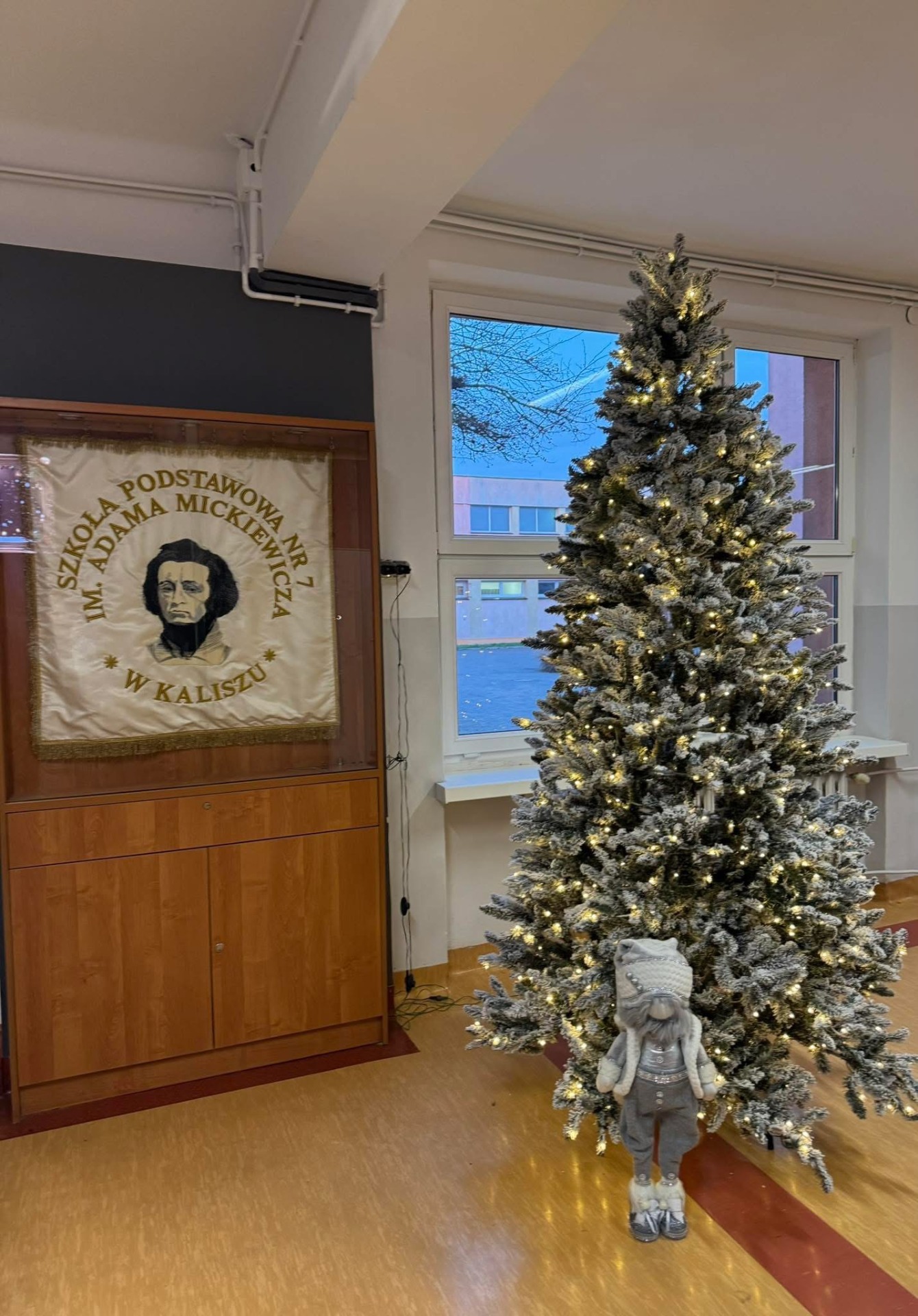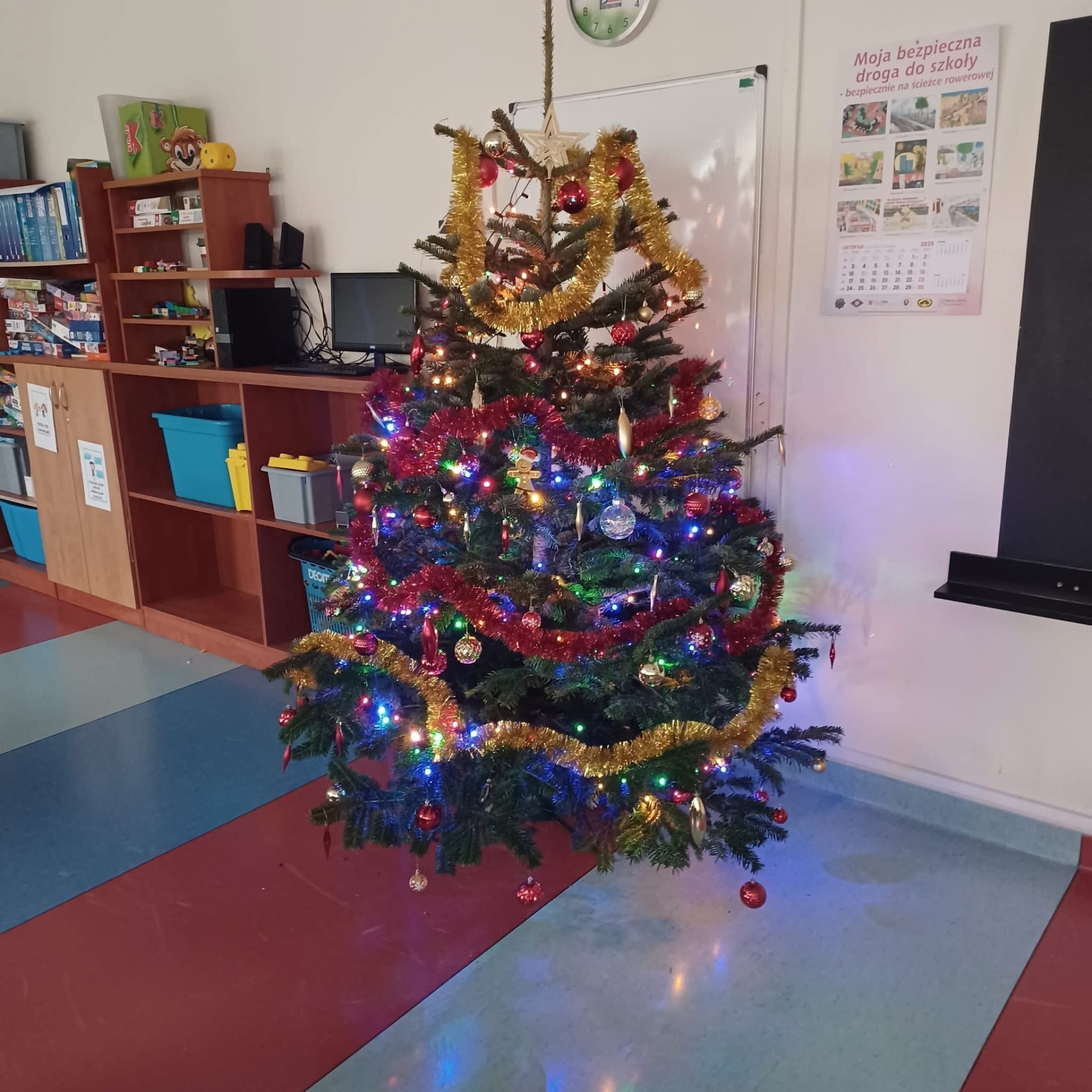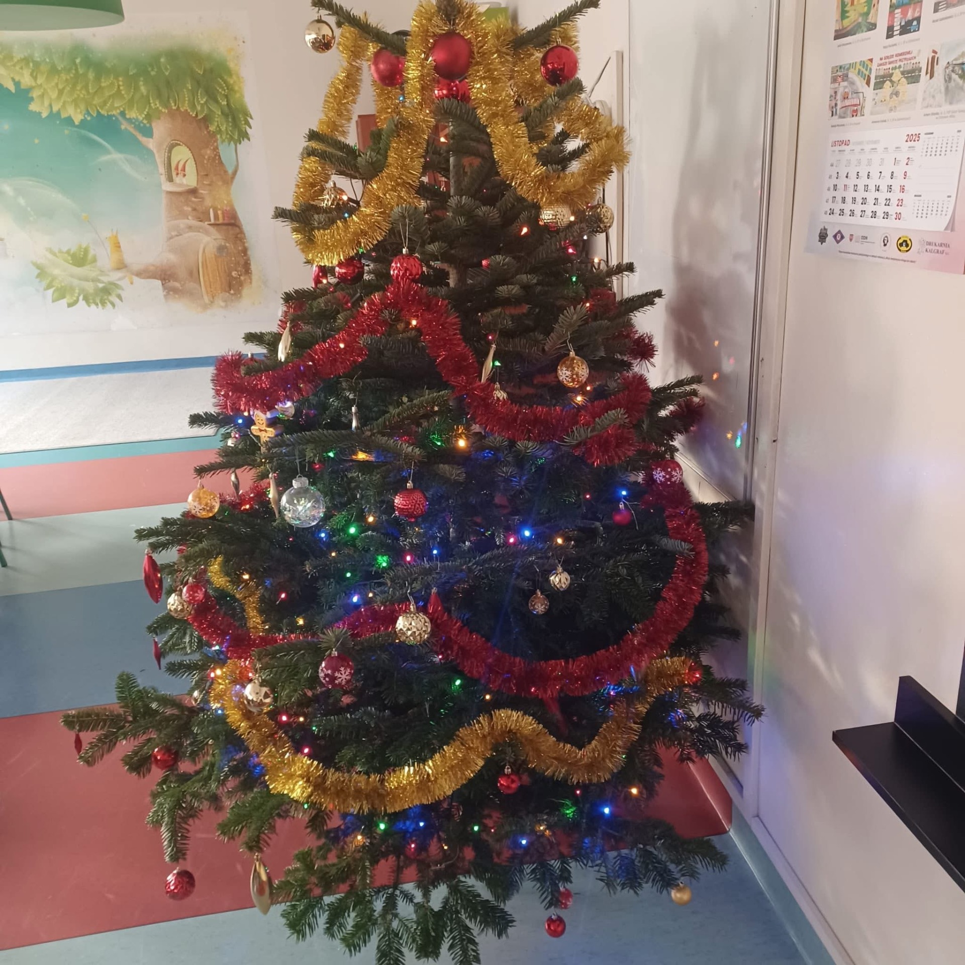Po wejściu do szkoły wita nas już od progu olśniewająca choinka w holu, której blask lampek można podziwiać z daleka.