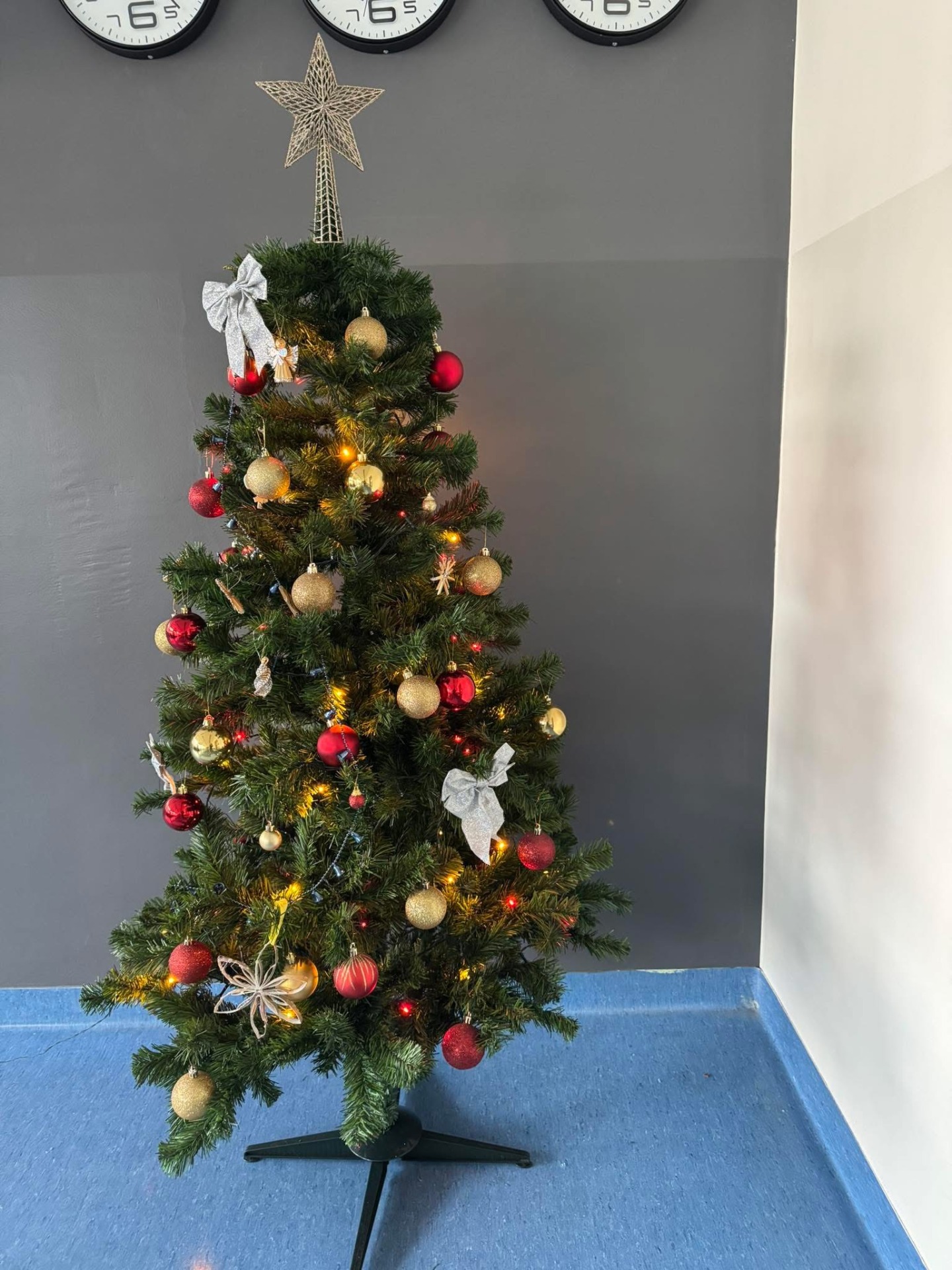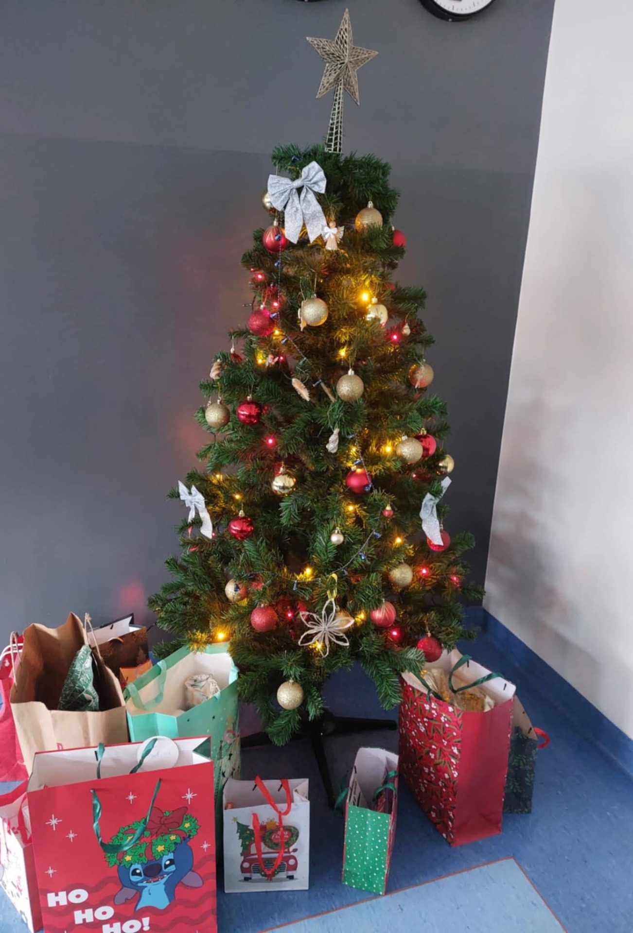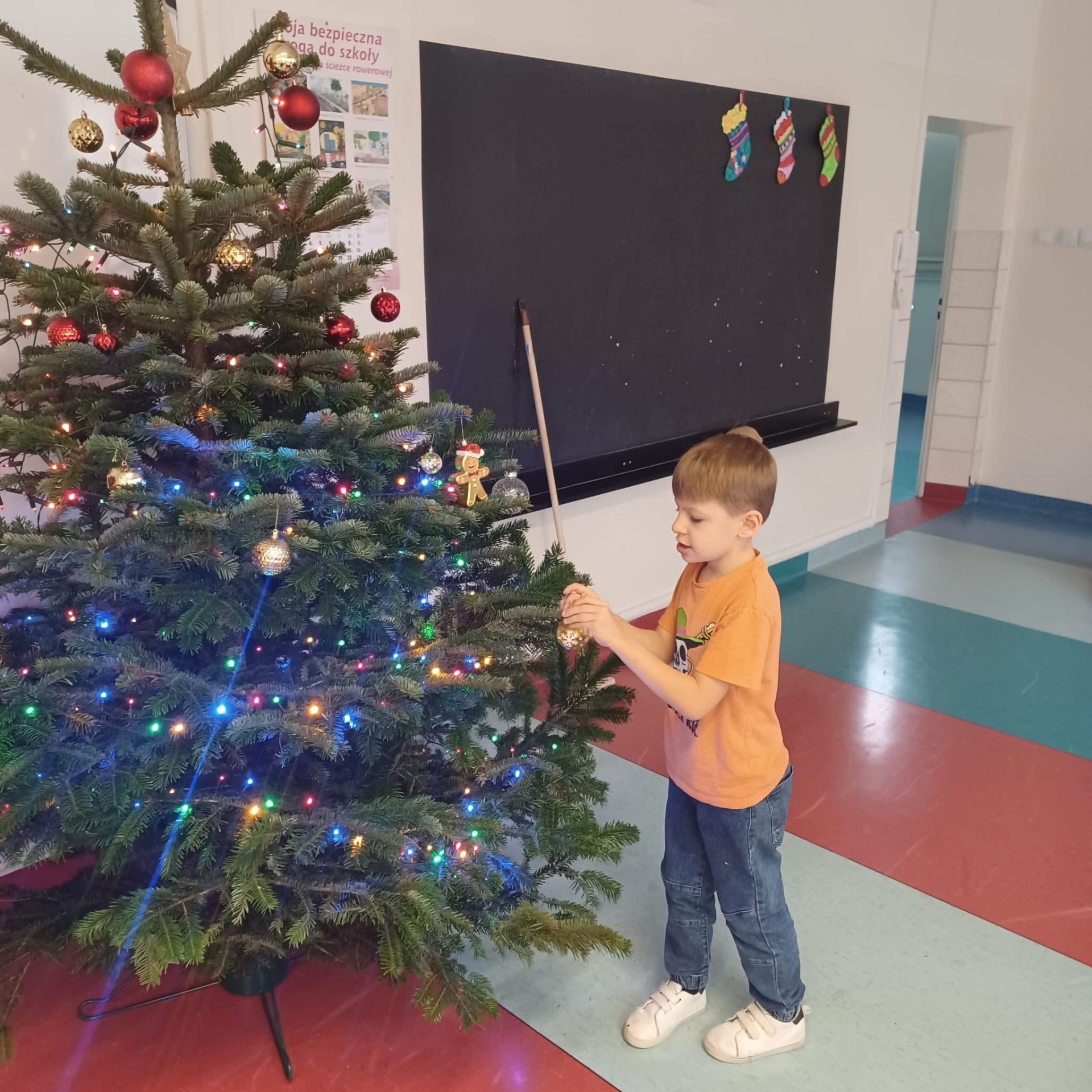 Po wejściu do szkoły wita nas już od progu olśniewająca choinka w holu, której blask lampek można podziwiać z daleka.