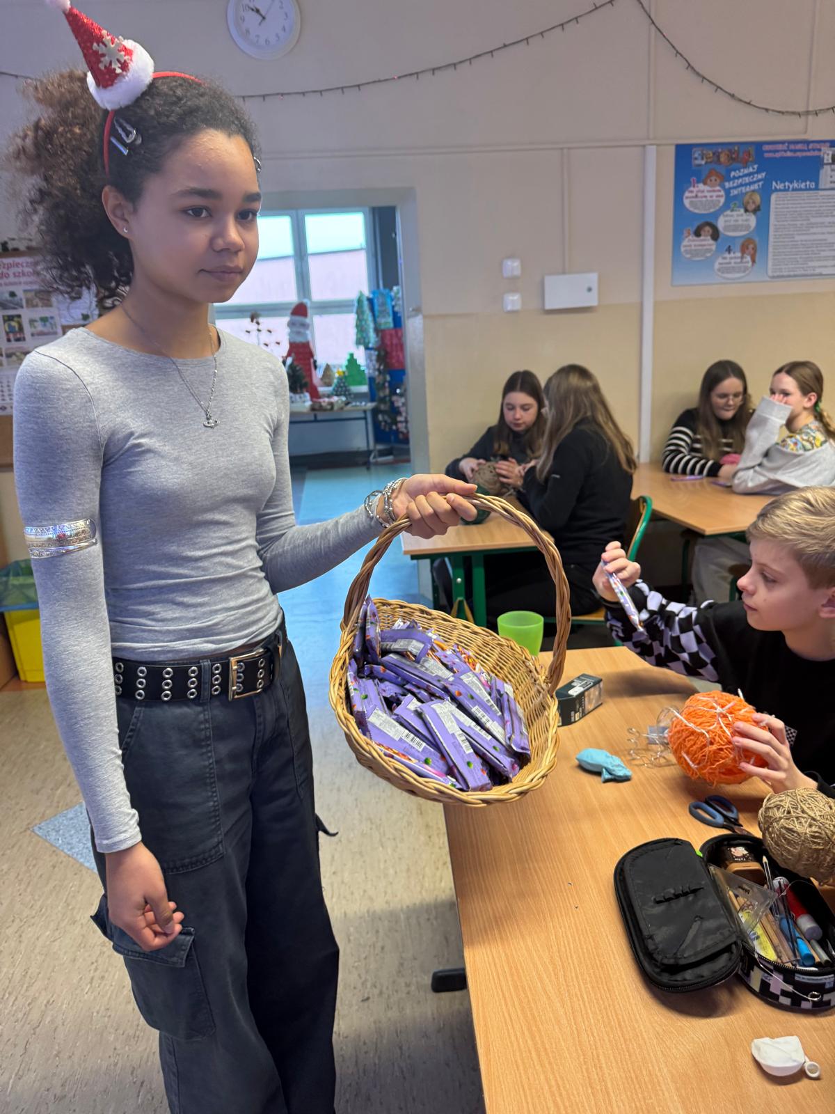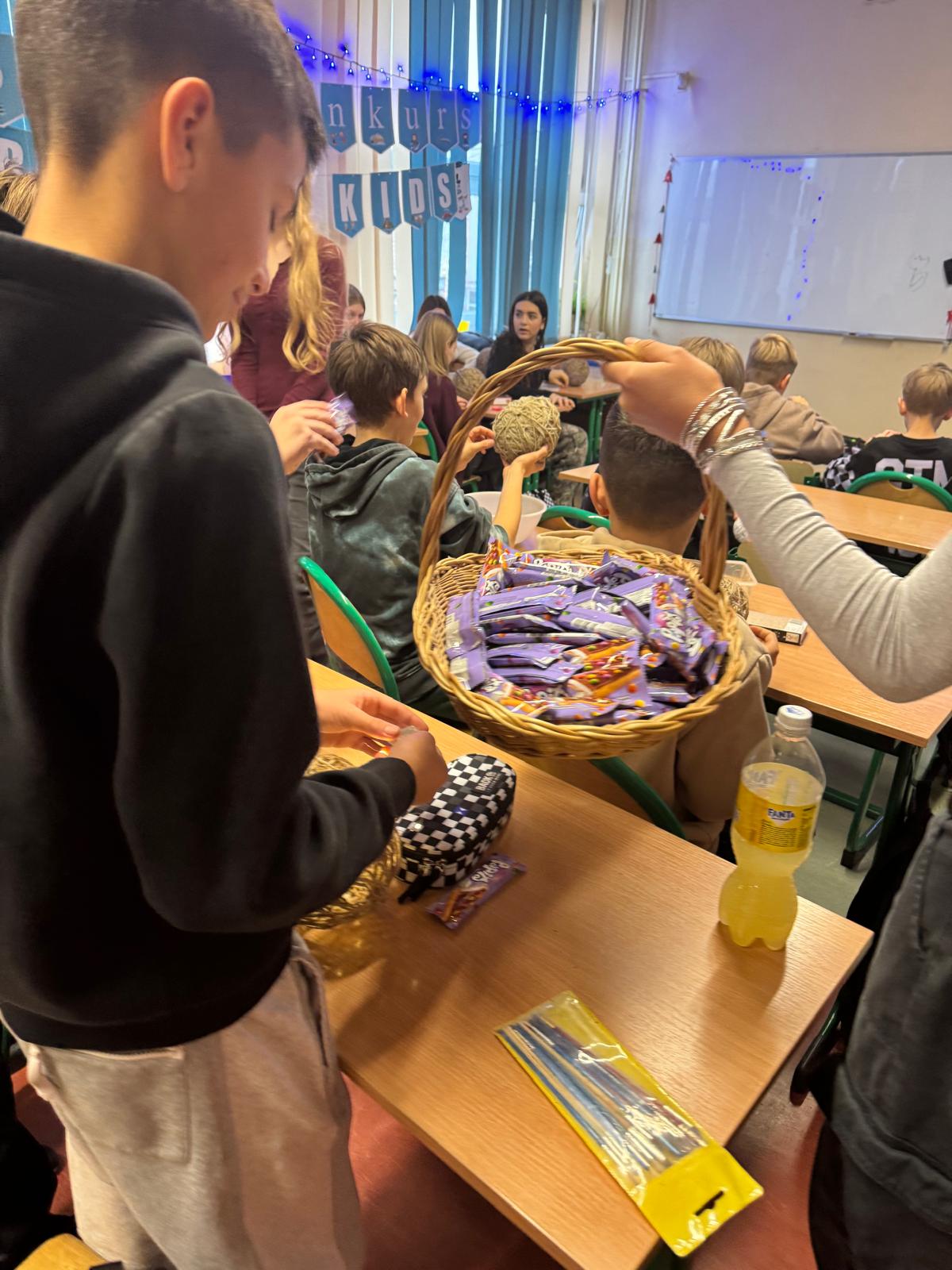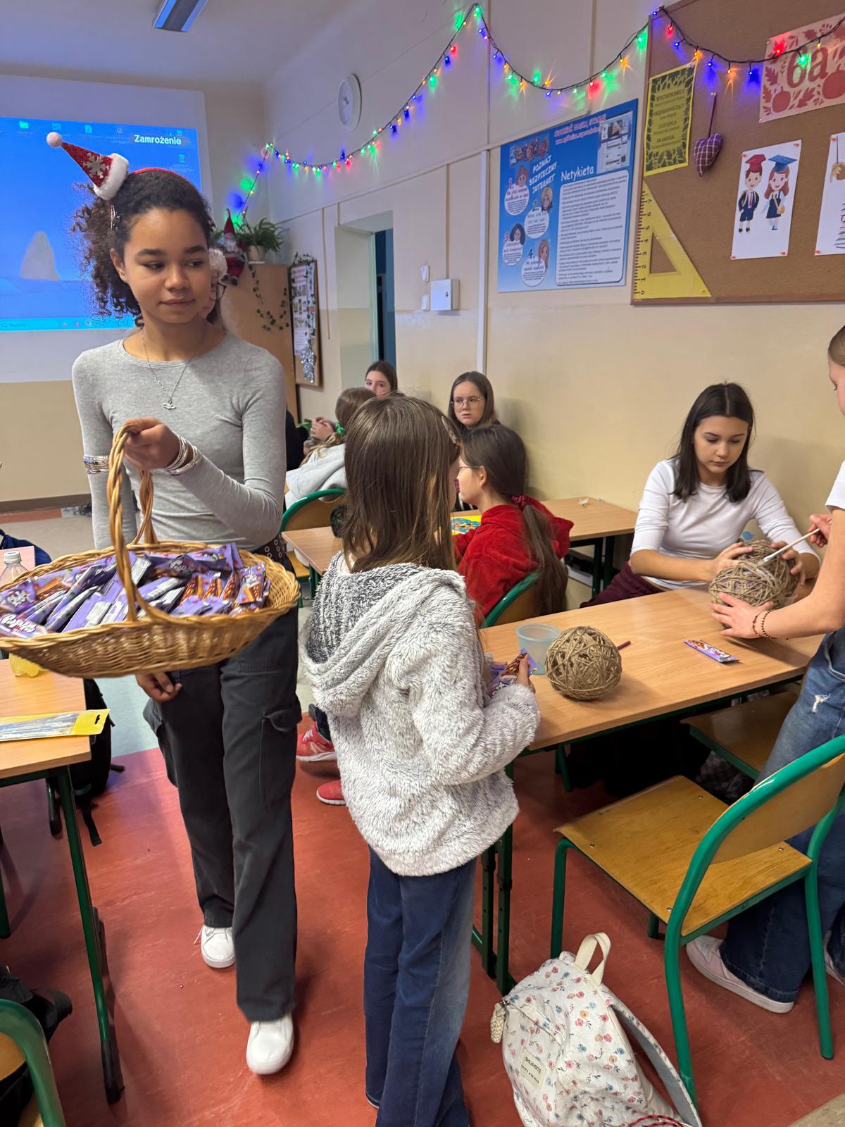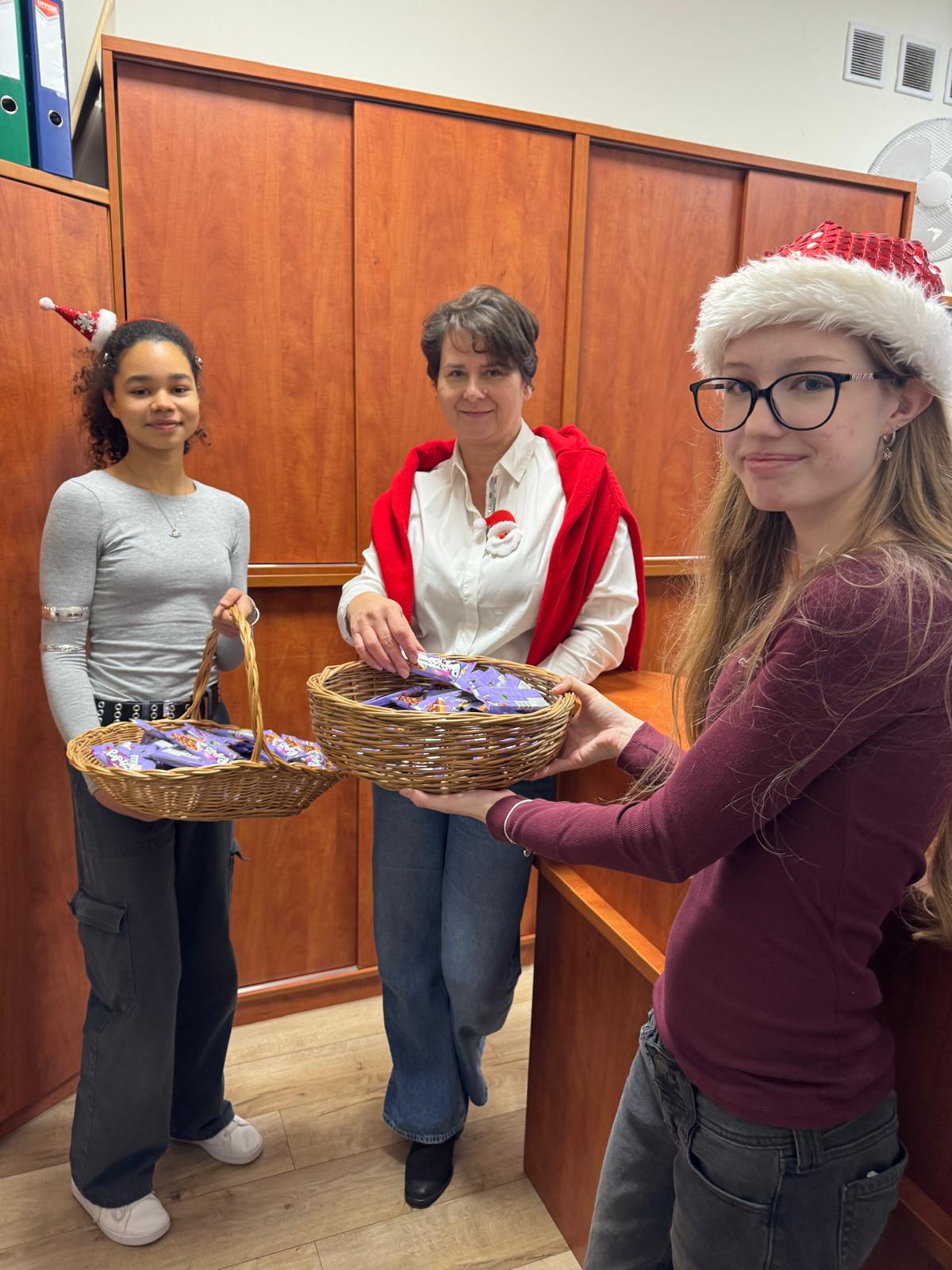 Aby osłodzić nam jeszcze bardziej ten milutki czas, Rada Rodziców miała wspaniały pomysł. Wraz ze swoimi niezawodnymi pomocnikami ze Samorządu Szkolnego, częstowali każdego ucznia, nauczyciela i wszystkich pracowników szkoły, pysznym, słodkim batonikiem. To była przesłodka, czekoladowa energia na start świątecznego okresu.