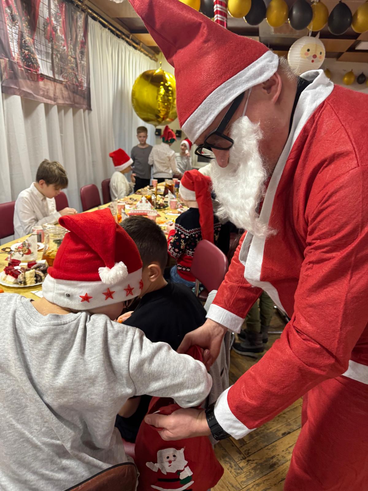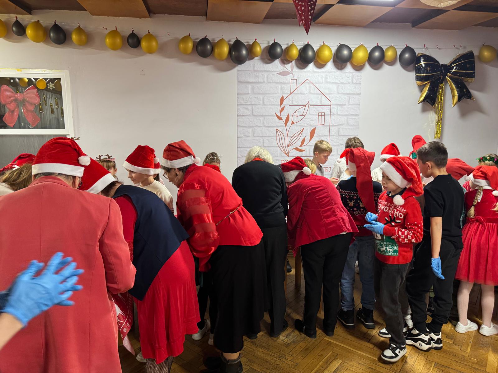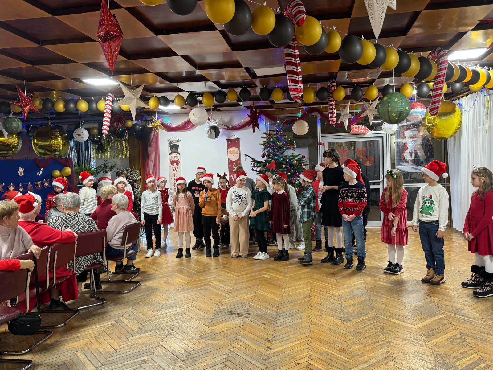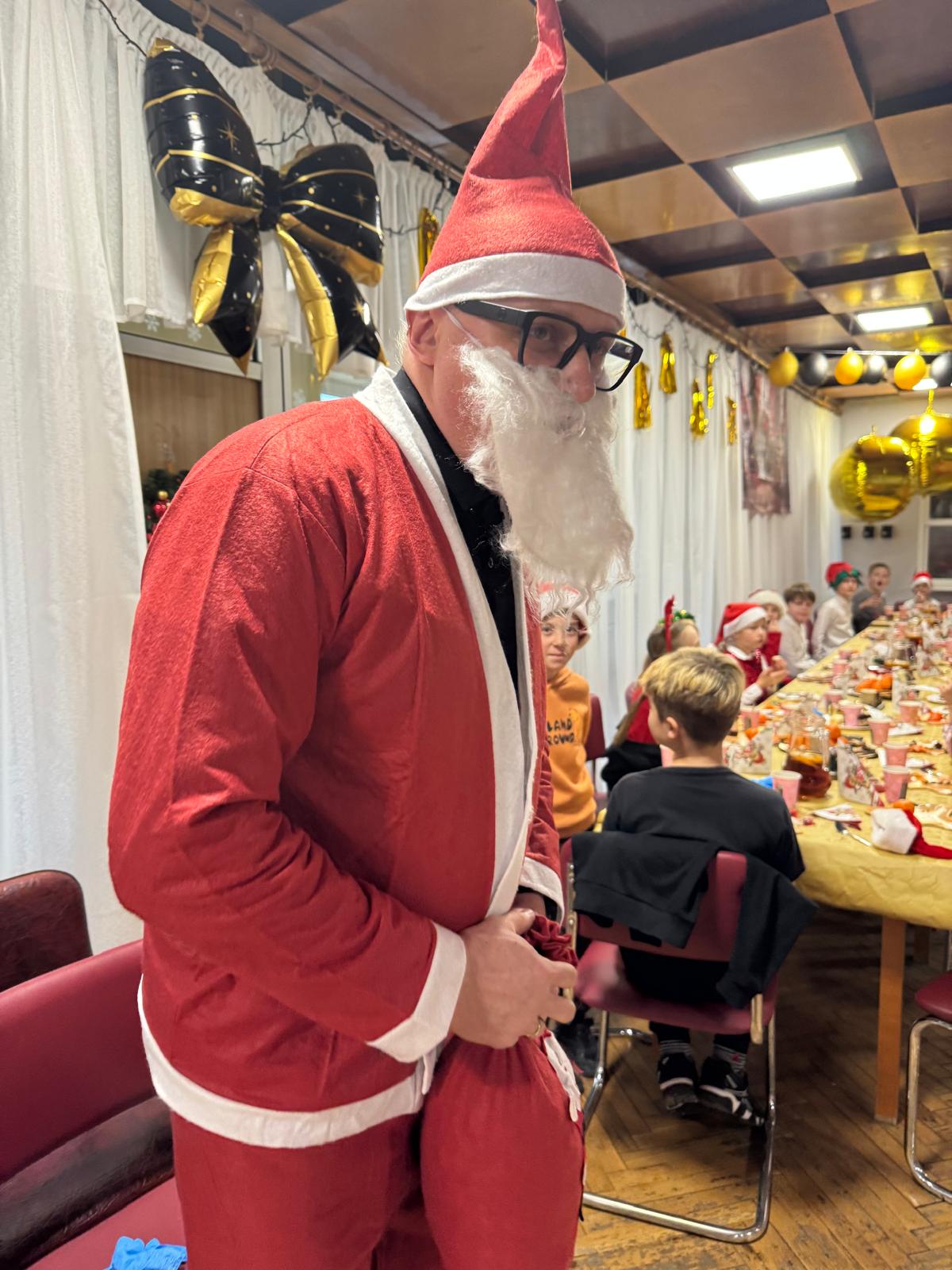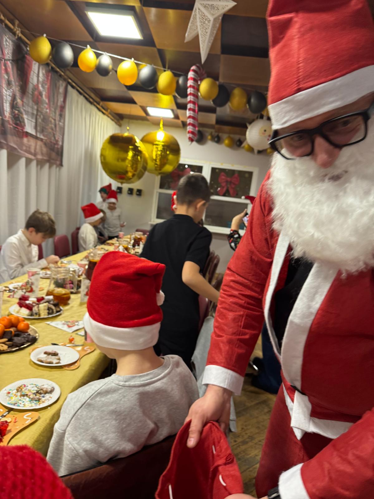 A gdy w sali pojawił się Święty Mikołaj, radość wypełniła wszystkich od stóp do głów. Z charakterystycznym „ho, ho, ho!” obdarował uczestników słodkimi niespodziankami, wywołując uśmiechy zarówno na twarzach dzieci, jak i dorosłych.