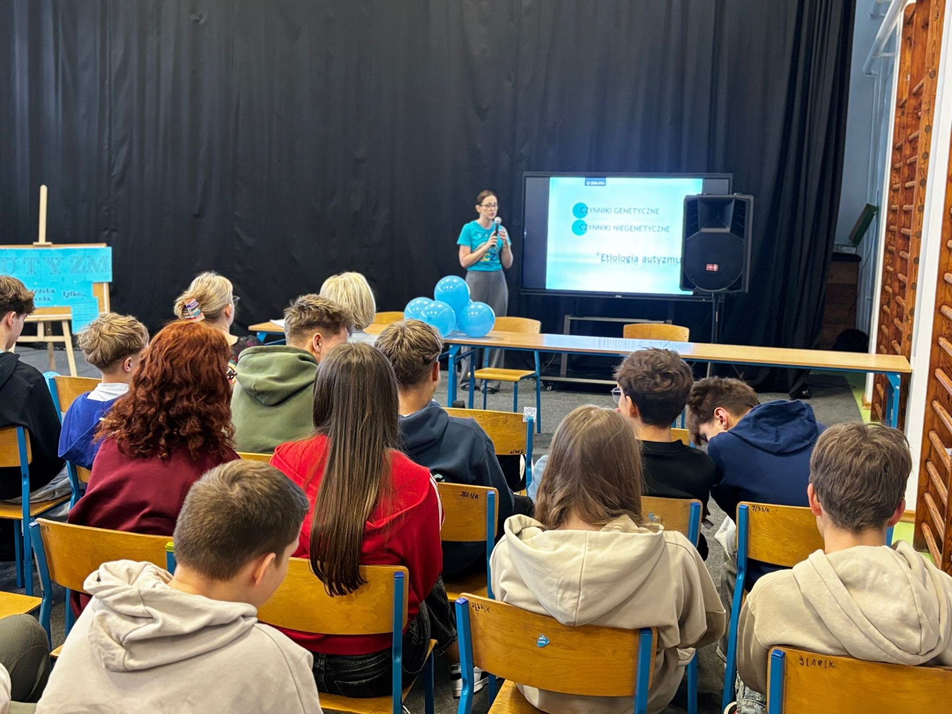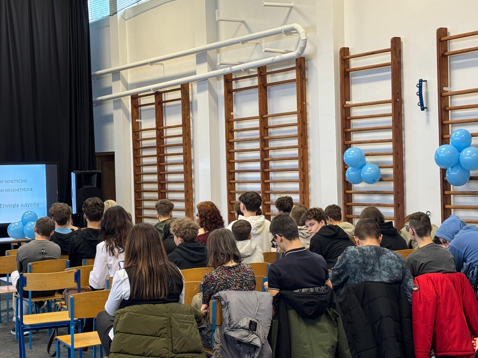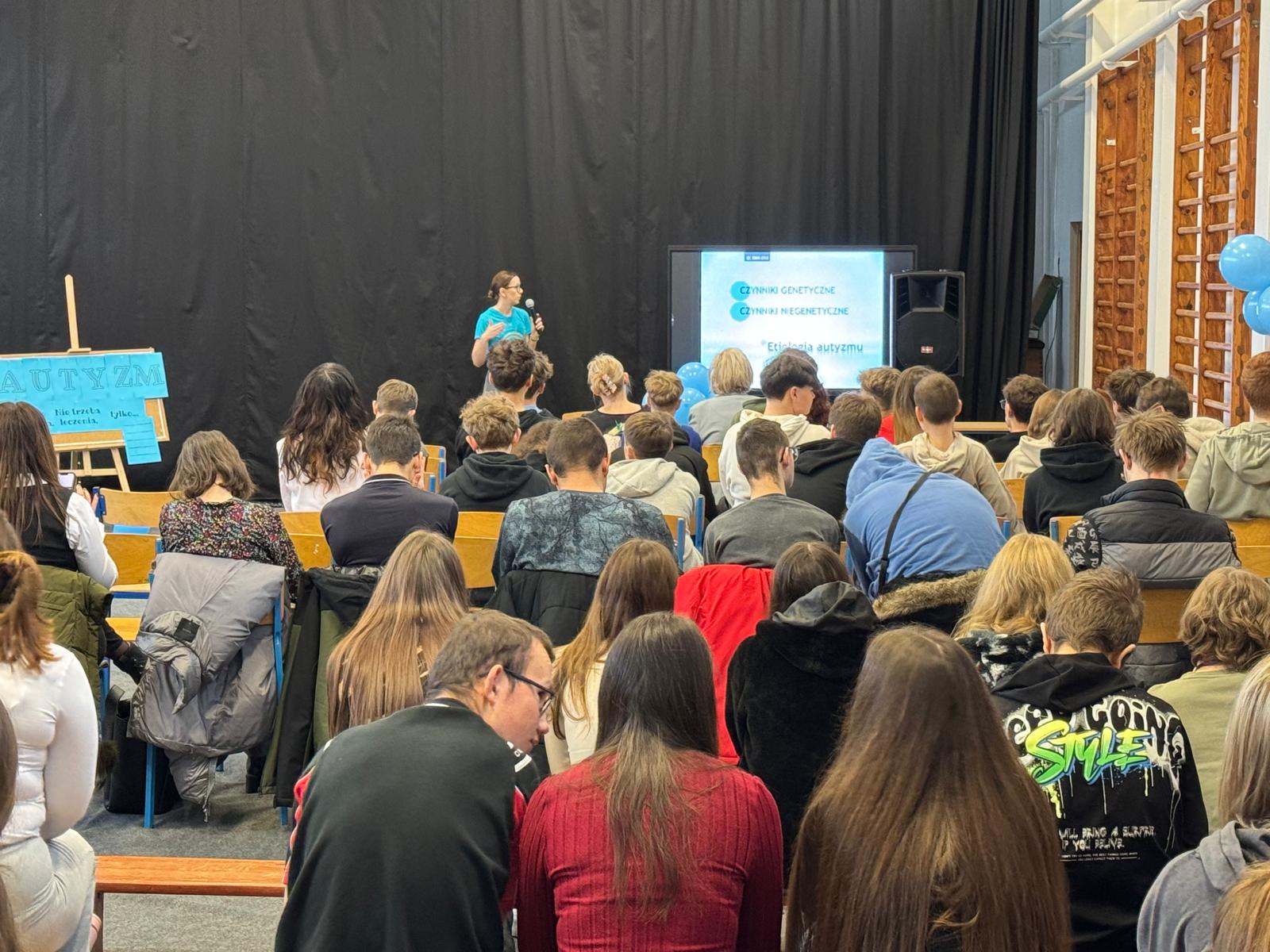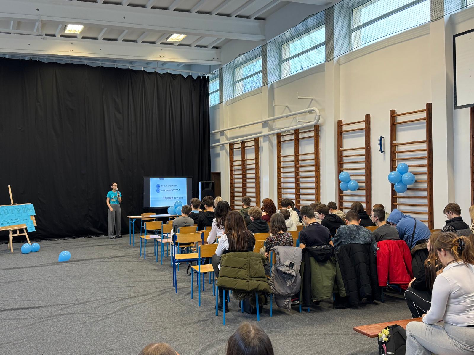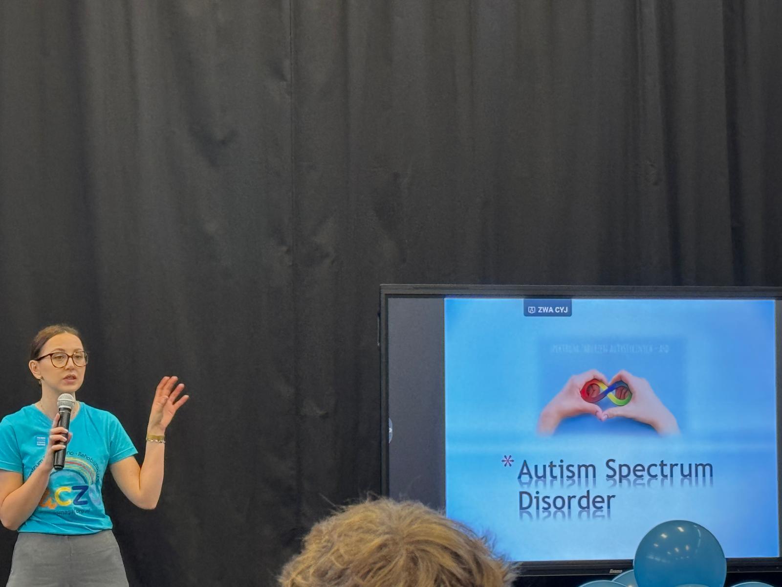 Nasi uczniowie aktywnie włączyli się w przebieg spotkania, przeprowadzając wśród uczestników quiz Kahoot, w którym można było odpowiedzieć na pytania związane z autyzmem.