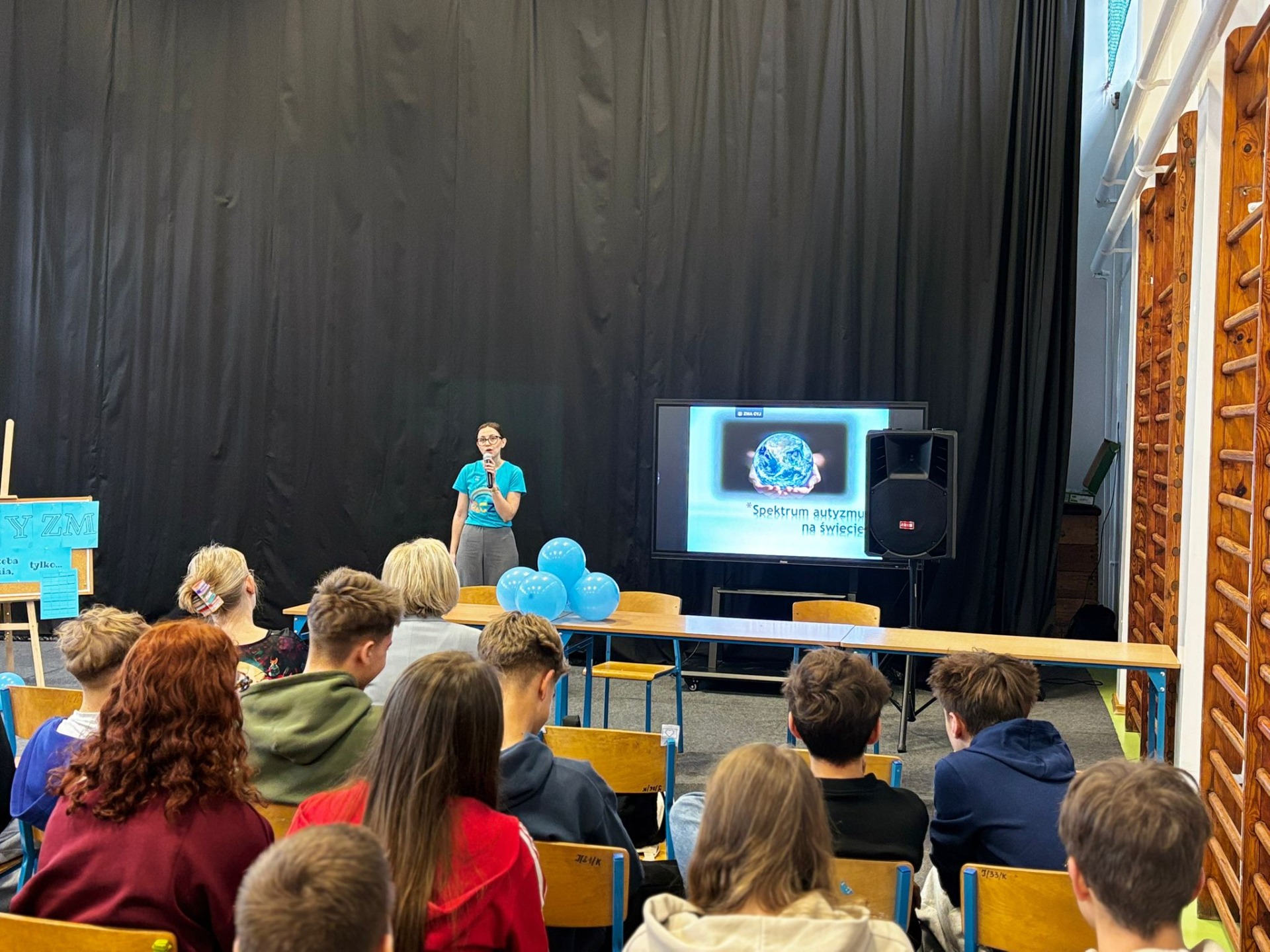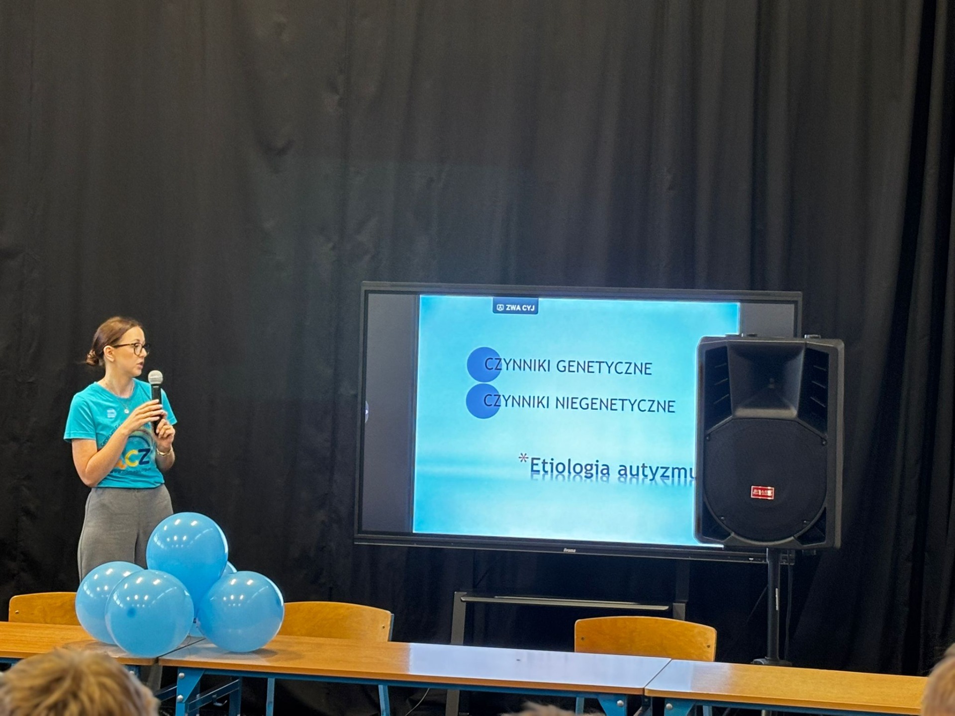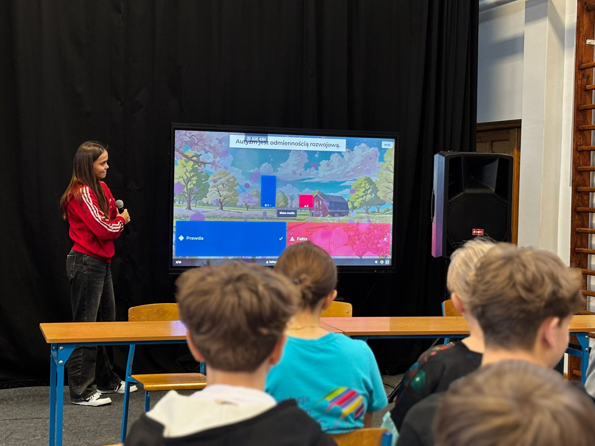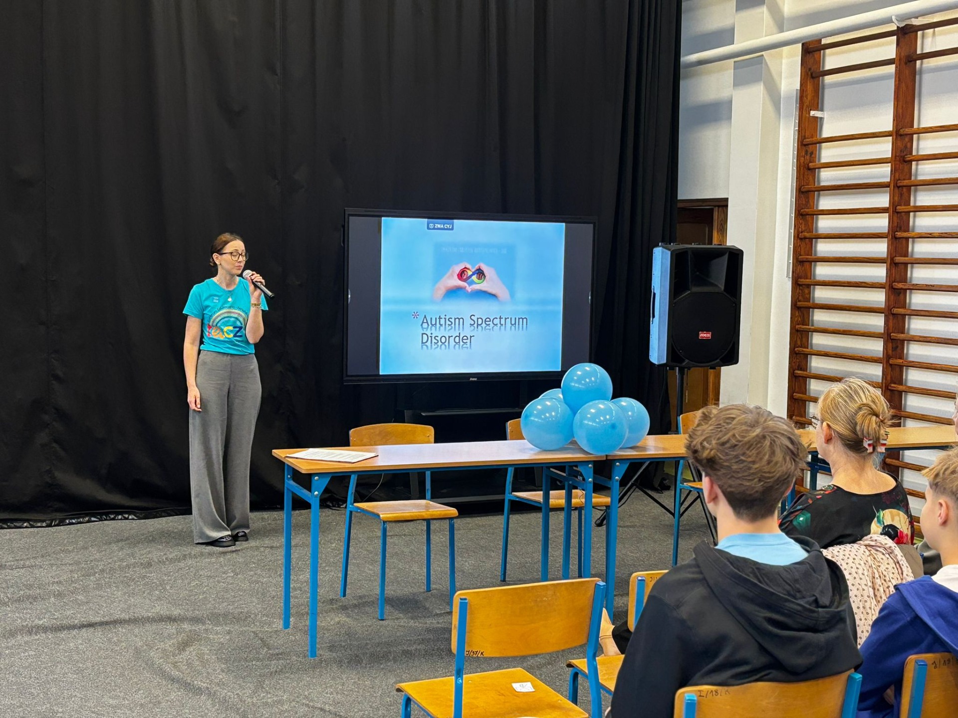 Nasi uczniowie aktywnie włączyli się w przebieg spotkania, przeprowadzając wśród uczestników quiz Kahoot, w którym można było odpowiedzieć na pytania związane z autyzmem.