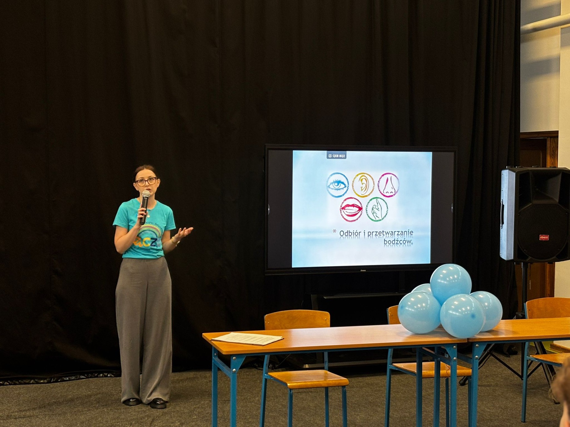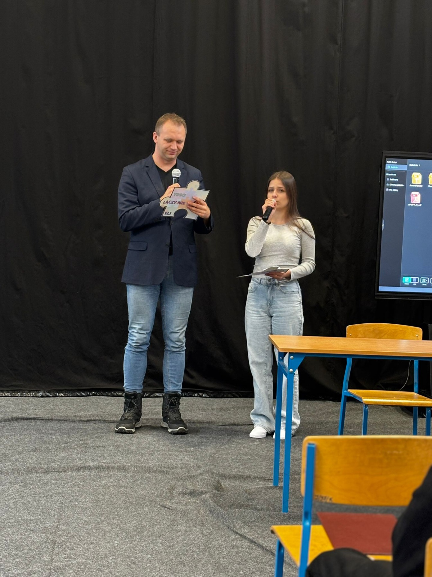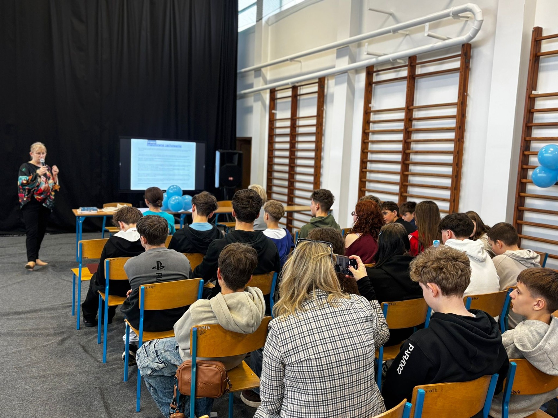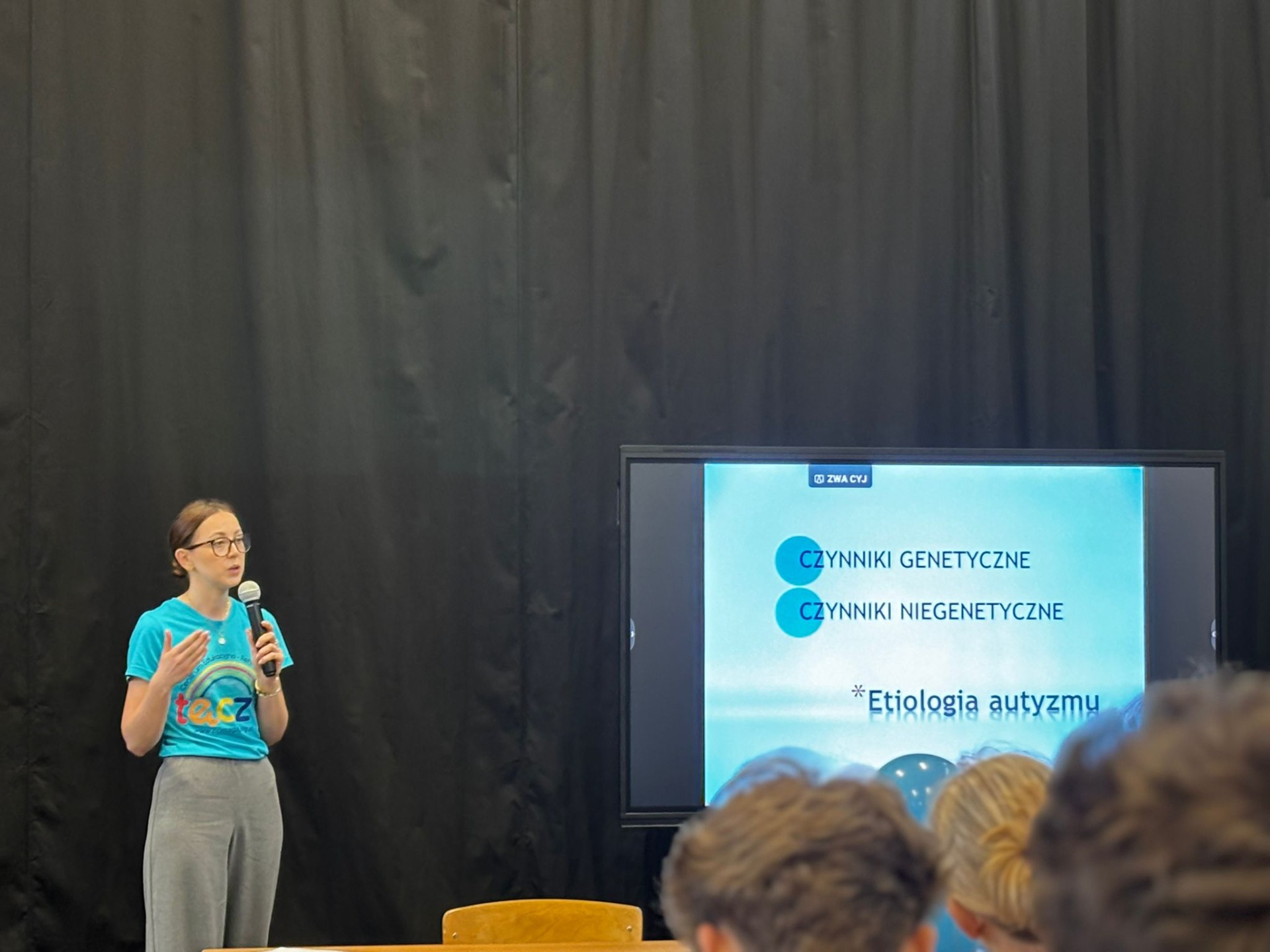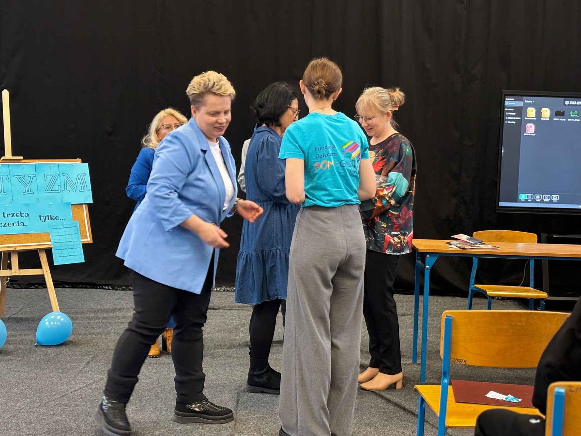 Nasi uczniowie aktywnie włączyli się w przebieg spotkania, przeprowadzając wśród uczestników quiz Kahoot, w którym można było odpowiedzieć na pytania związane z autyzmem.