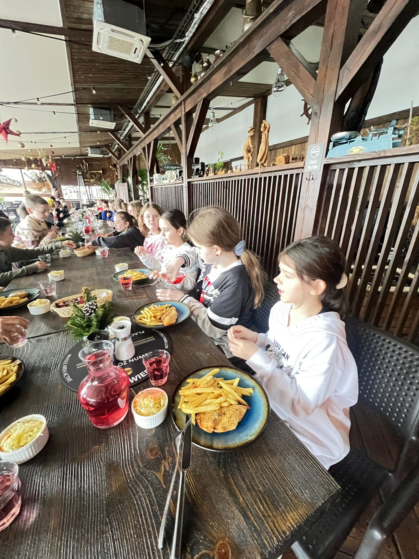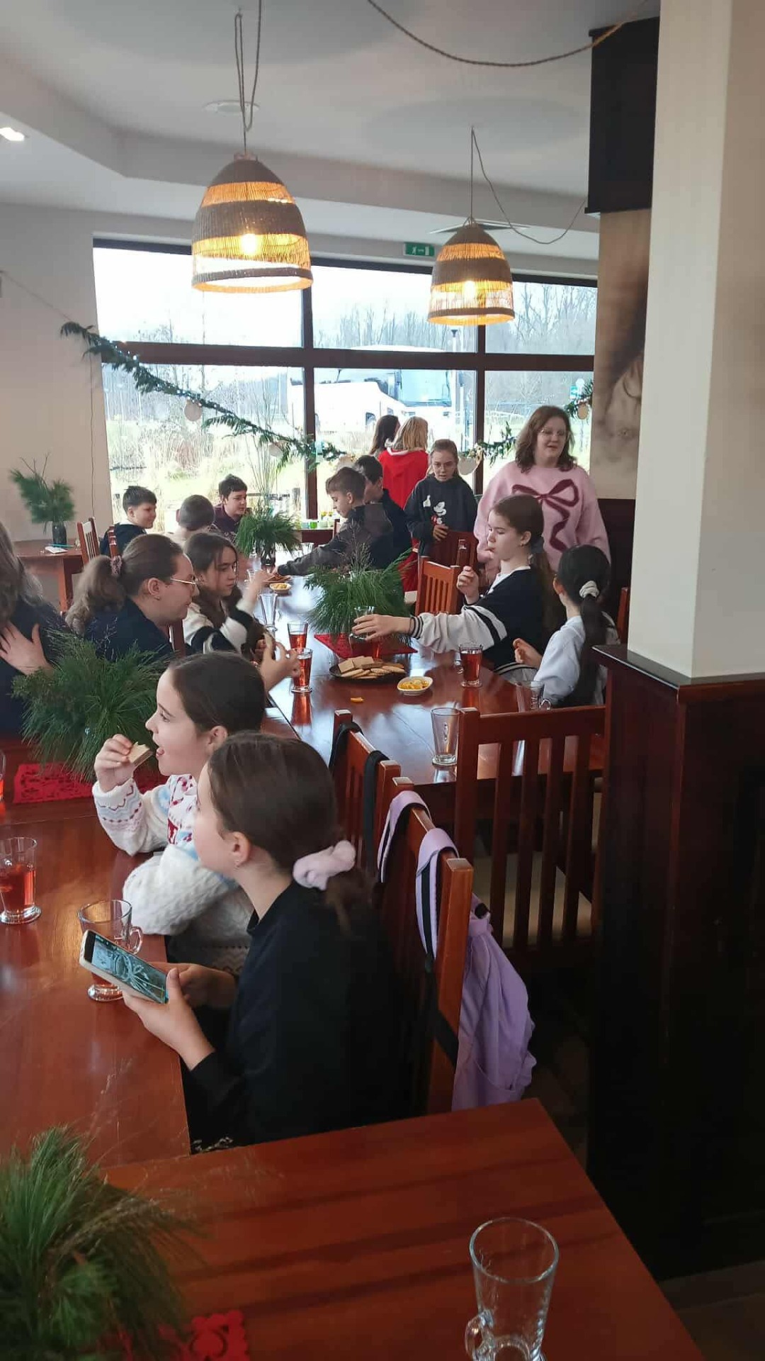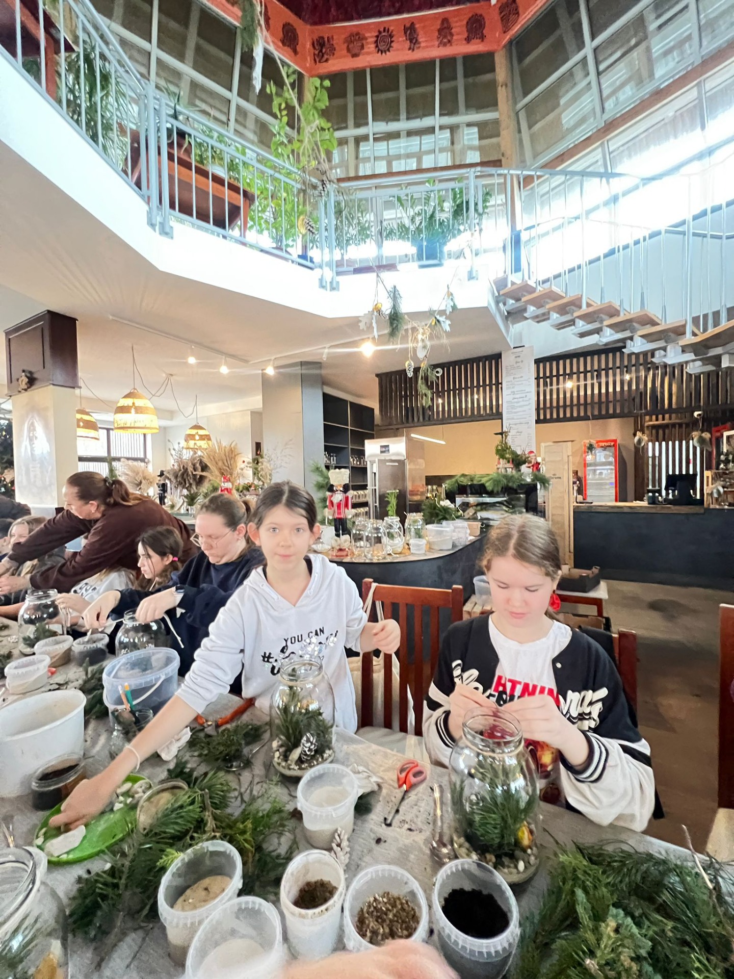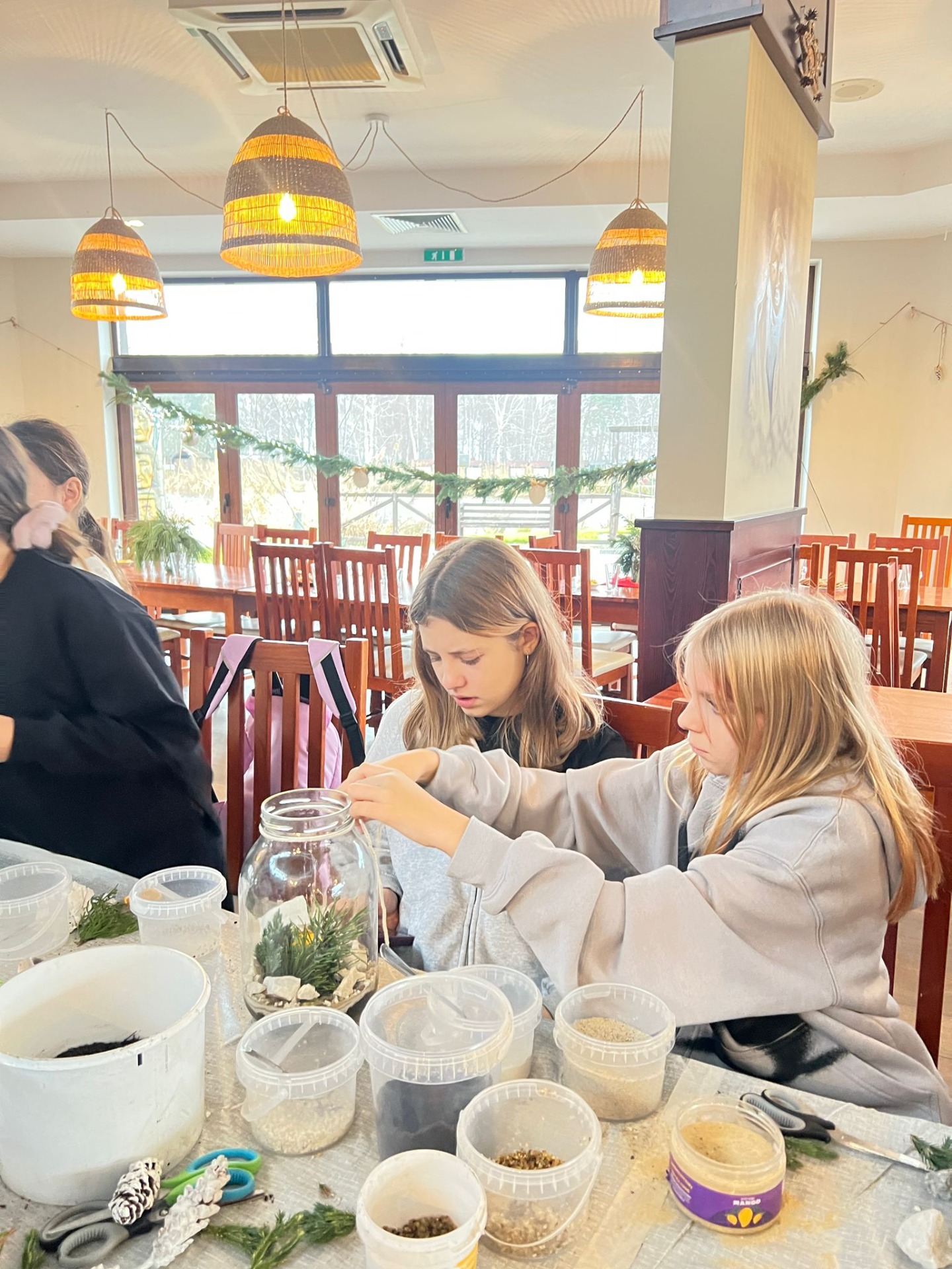 W pięknie udekorowanej świątecznymi ozdobami sali, w blasku wiszących lamp, otoczeni zapachem igliwia i ciepłem kominka, uczniowie przystąpili do twórczej pracy.