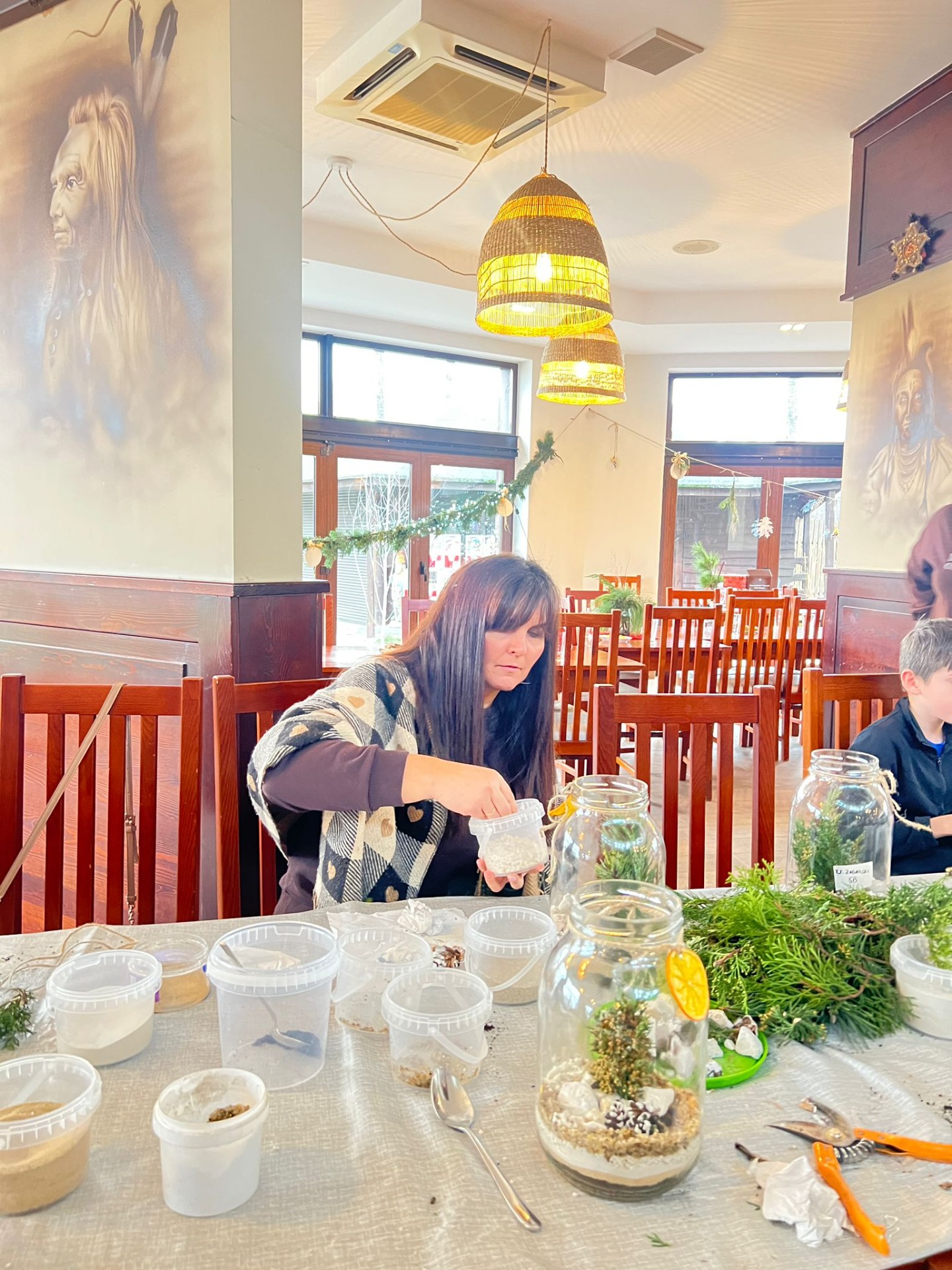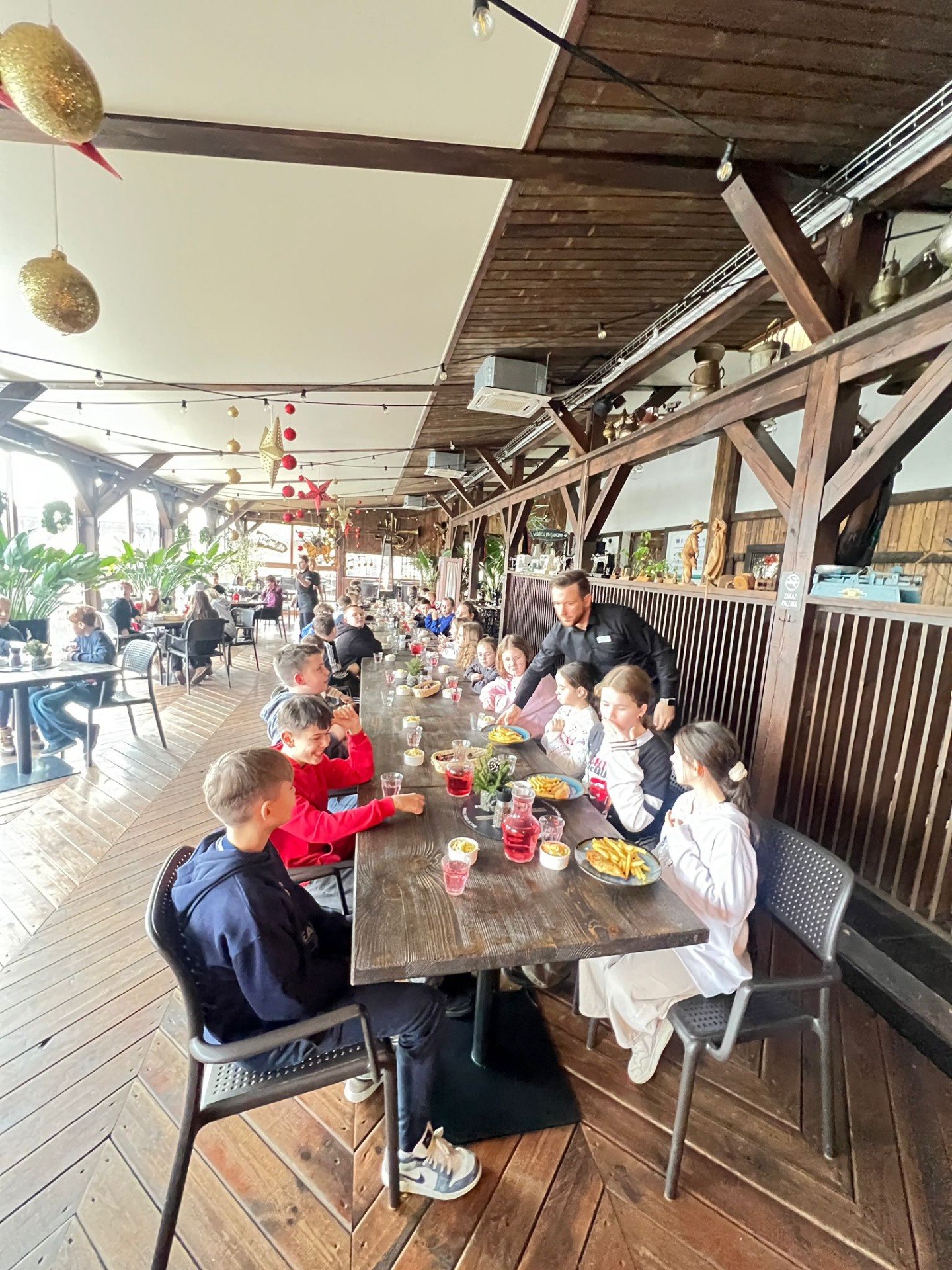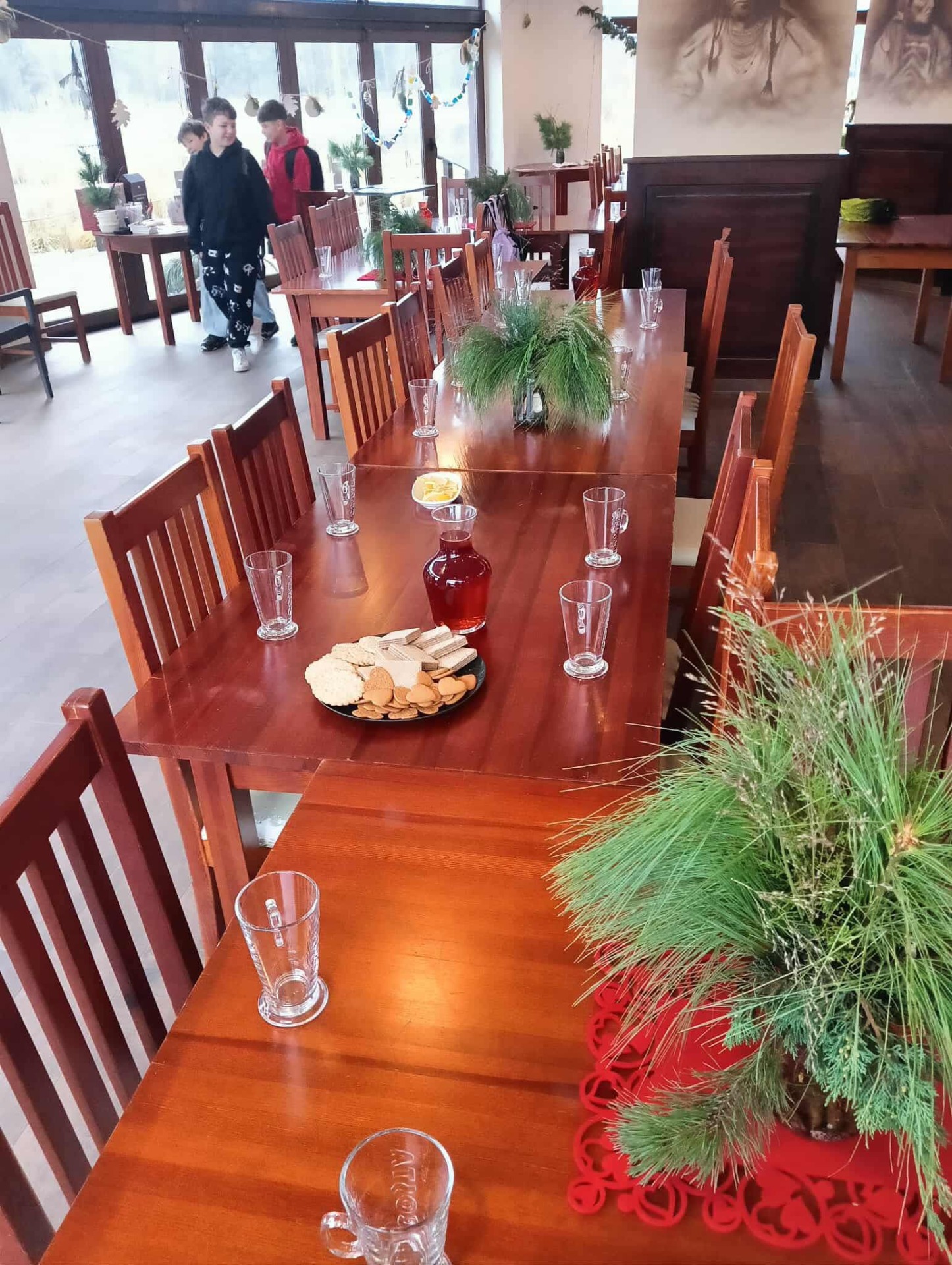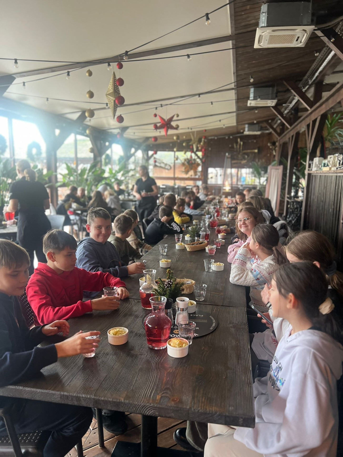 W pięknie udekorowanej świątecznymi ozdobami sali, w blasku wiszących lamp, otoczeni zapachem igliwia i ciepłem kominka, uczniowie przystąpili do twórczej pracy.
