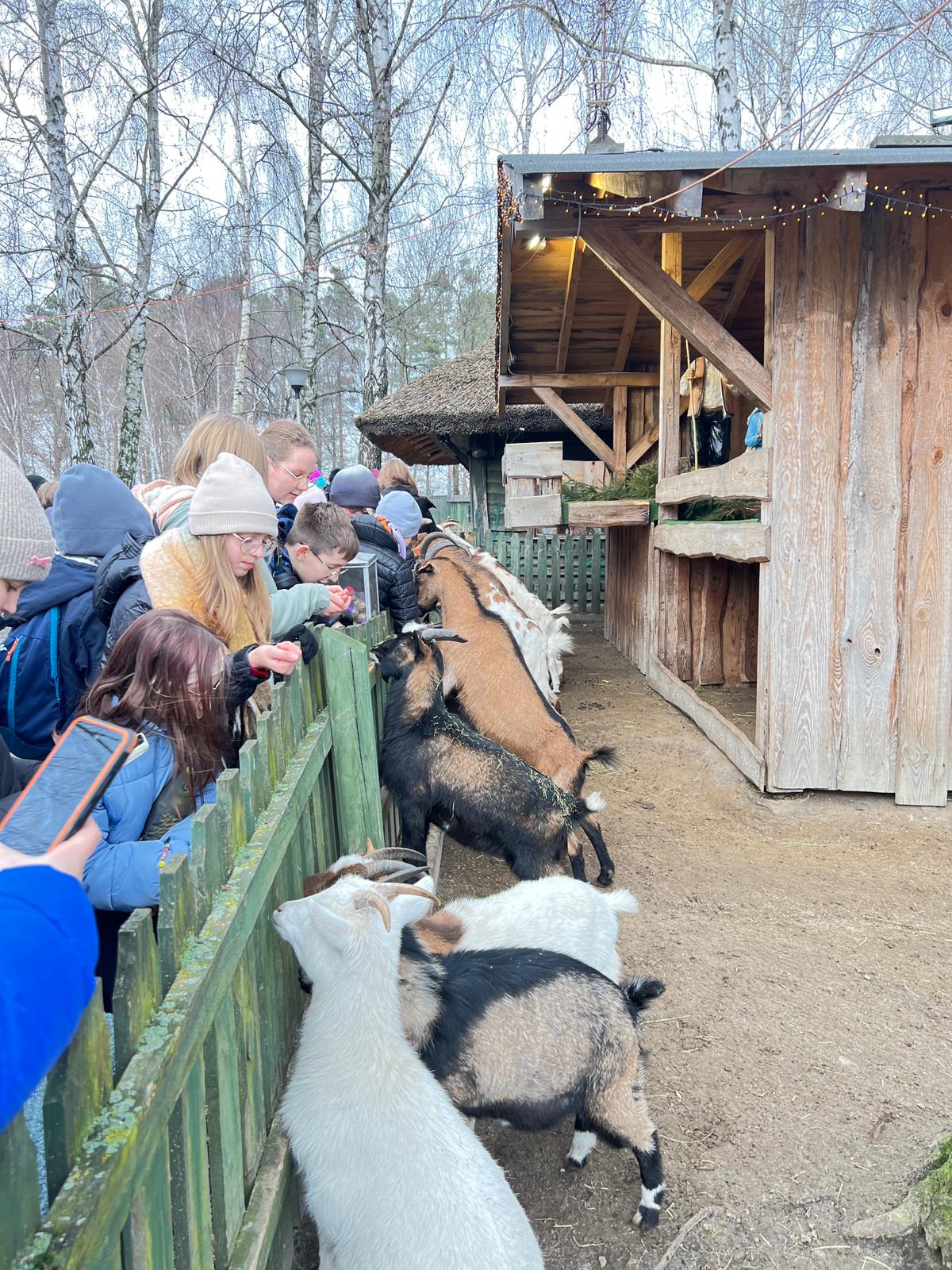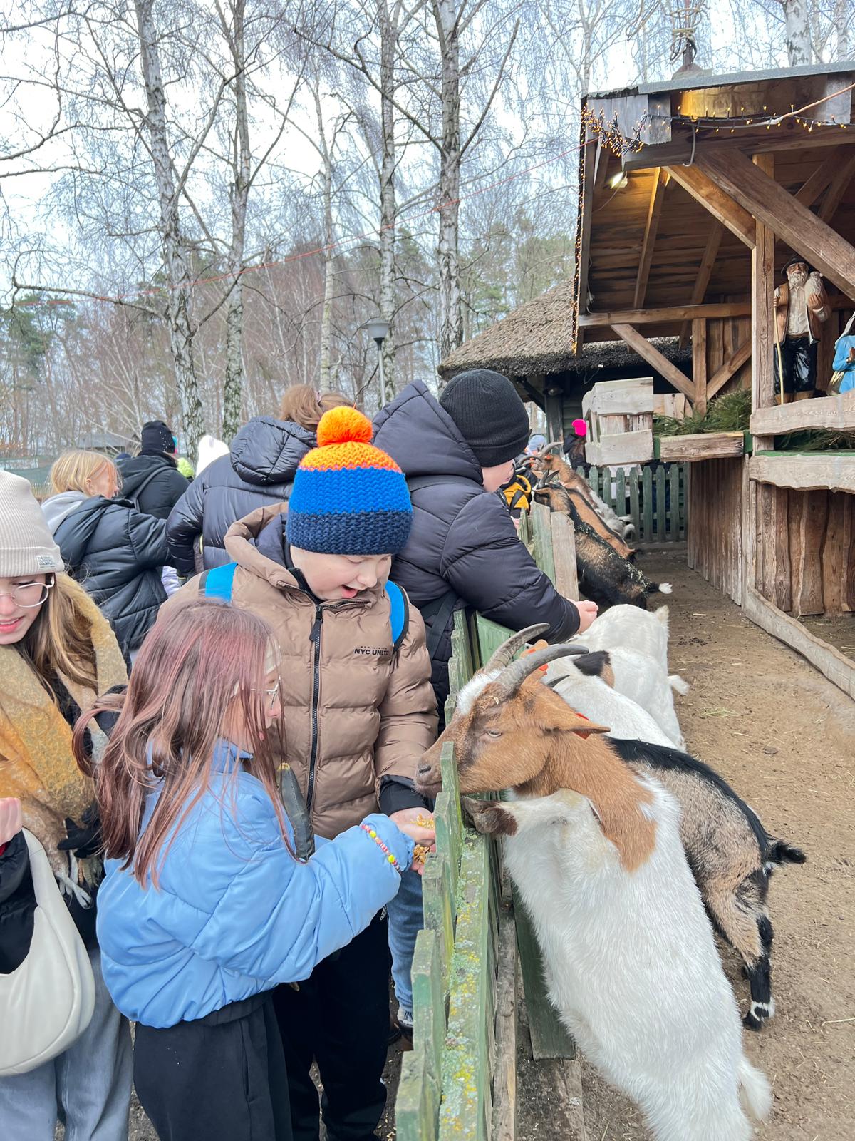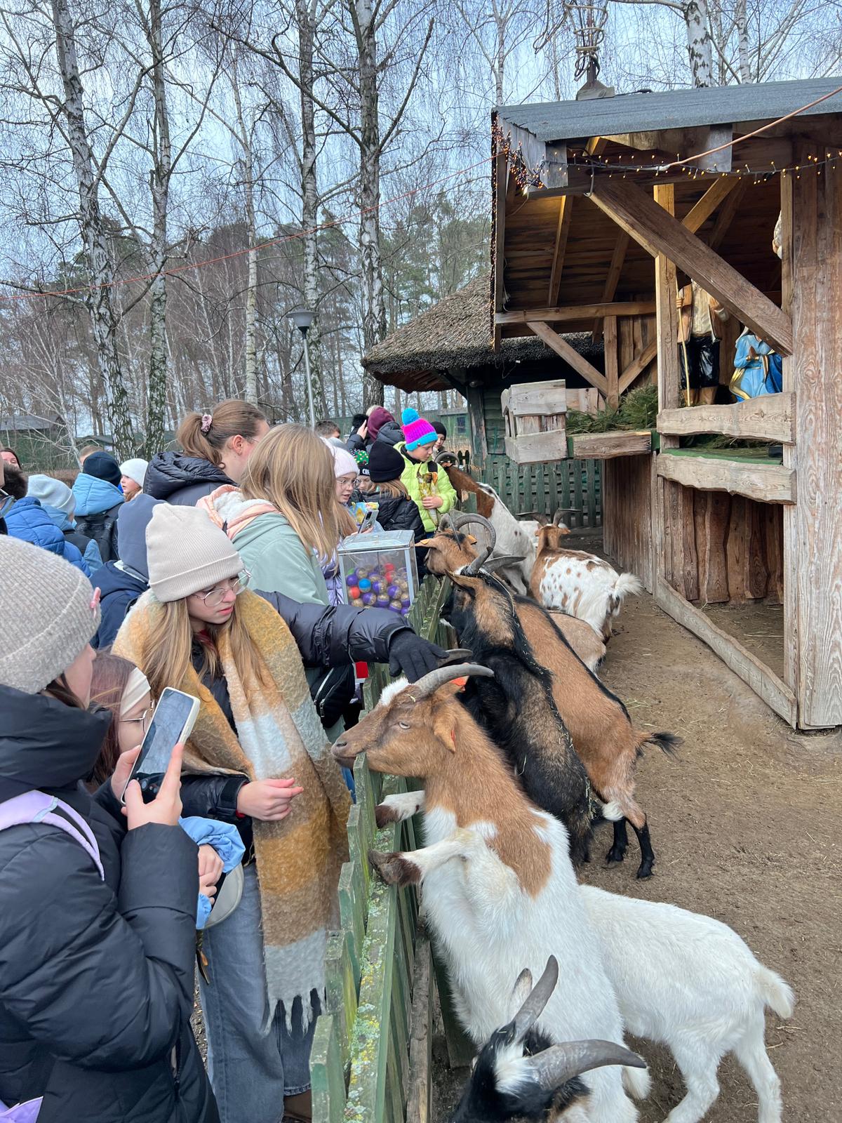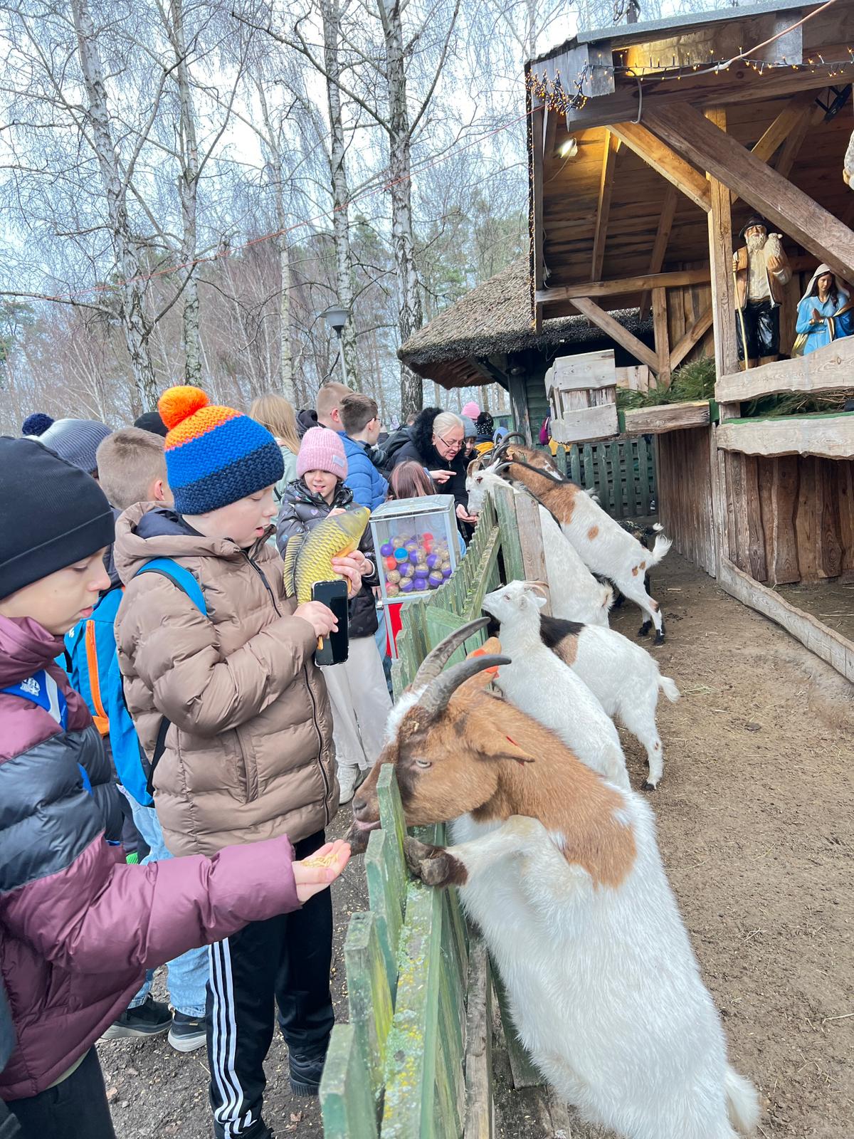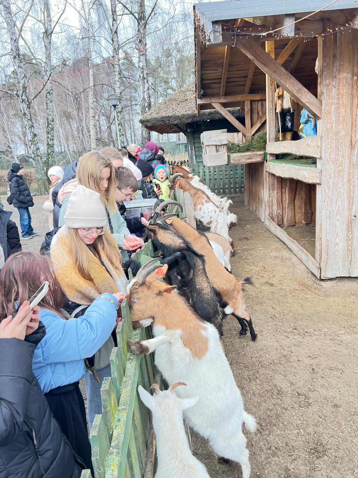 Po wspólnym posiłku, na zakończenie wycieczki, uczniowie udali się na spacer i odwiedzili minizoo. Była to okazja do kontaktu ze zwierzętami, a karmienie kóz i innych mieszkańców mini-zagrody dostarczyło wielu pozytywnych emocji.