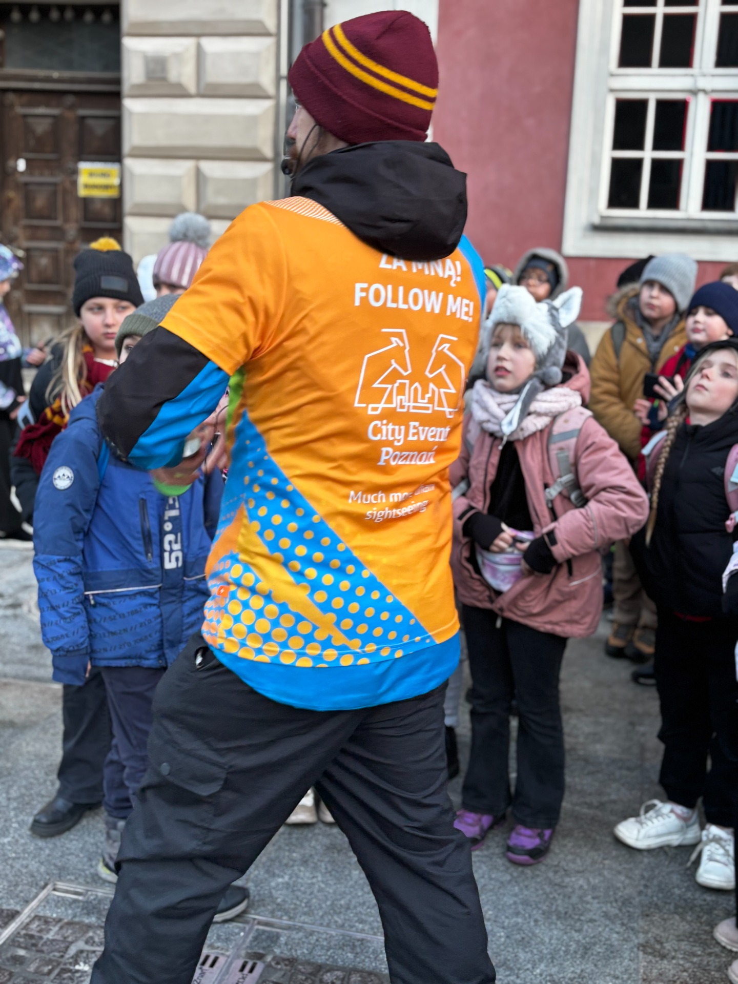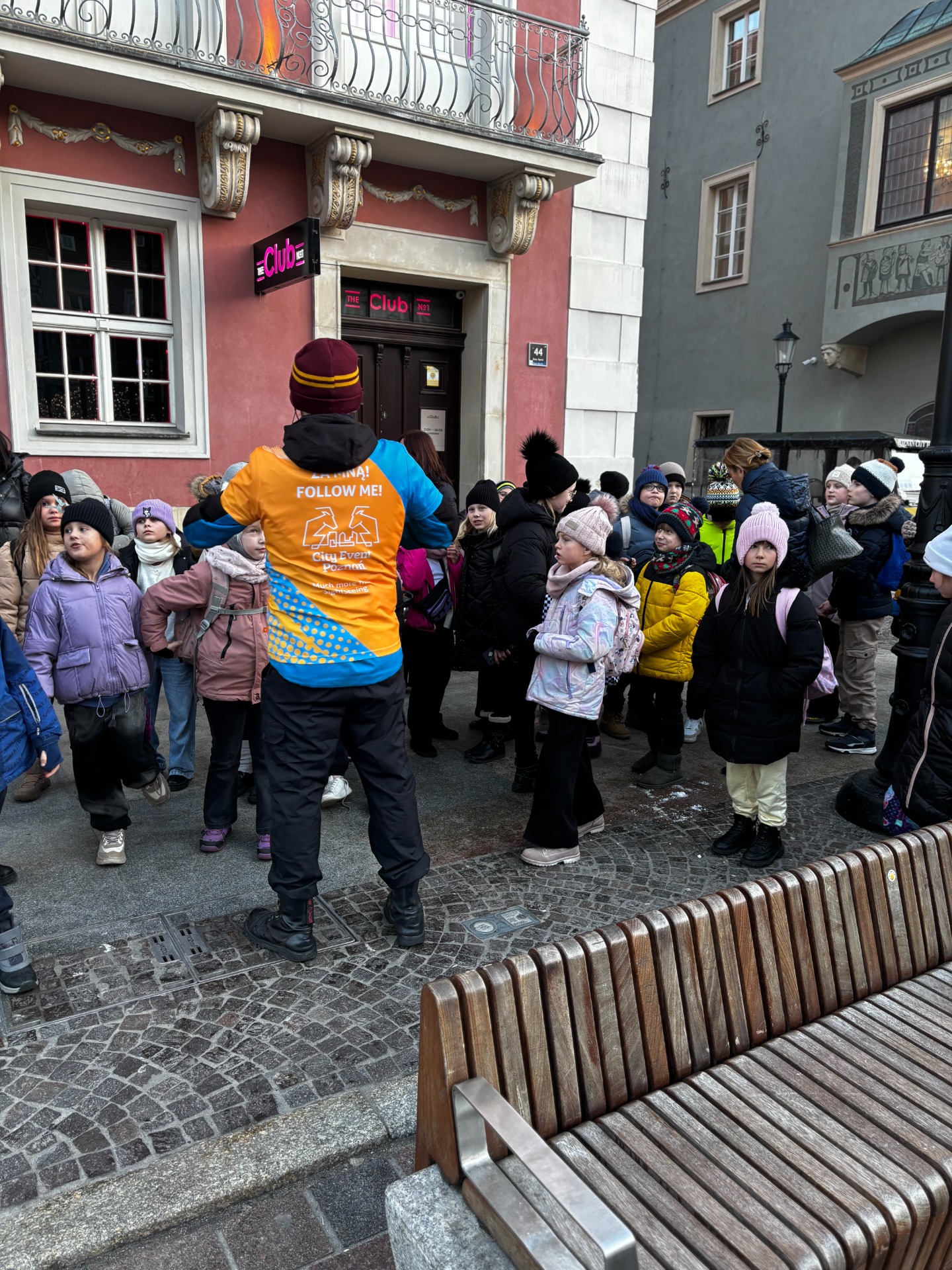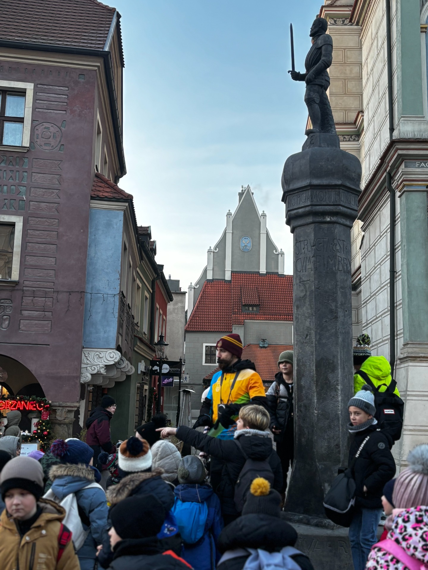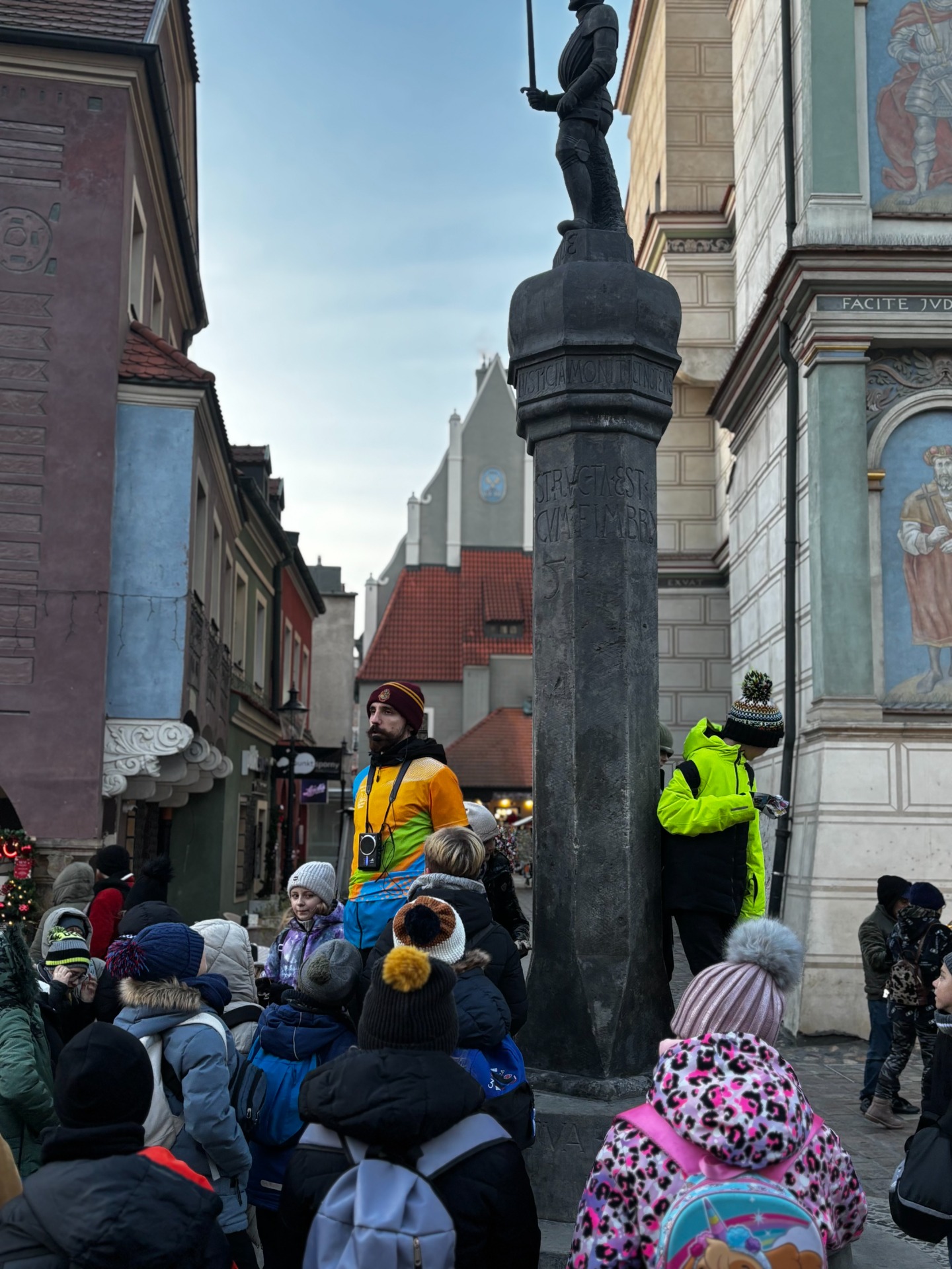 Na Starym Rynku czekały na nich kolejne atrakcje. Lodowisko obejrzeli z bezpiecznego dystansu (nikt nie planował gipsu przed świętami), a potem tradycyjnie „pobili się wzrokiem” z poznańskimi koziołkami.