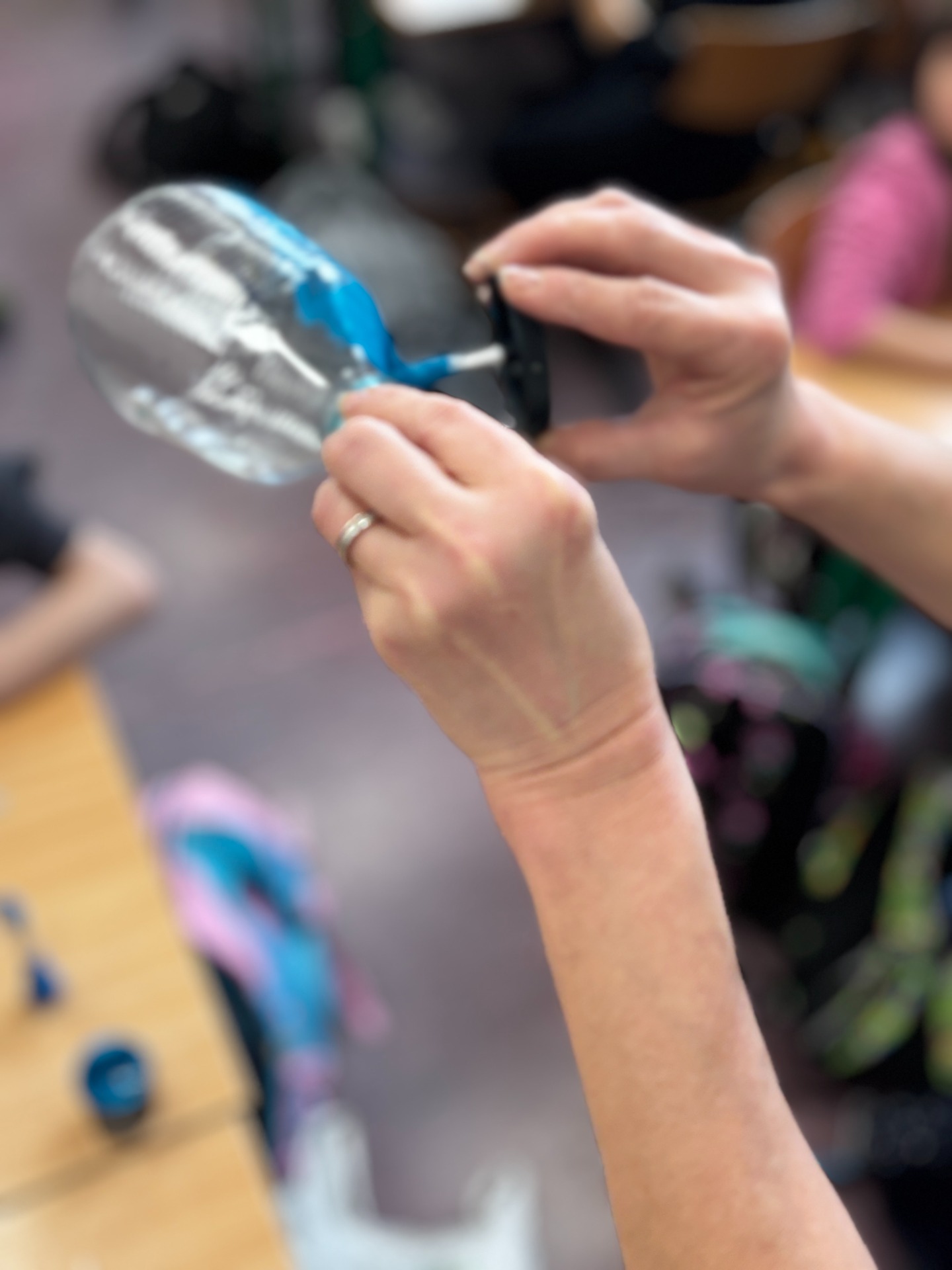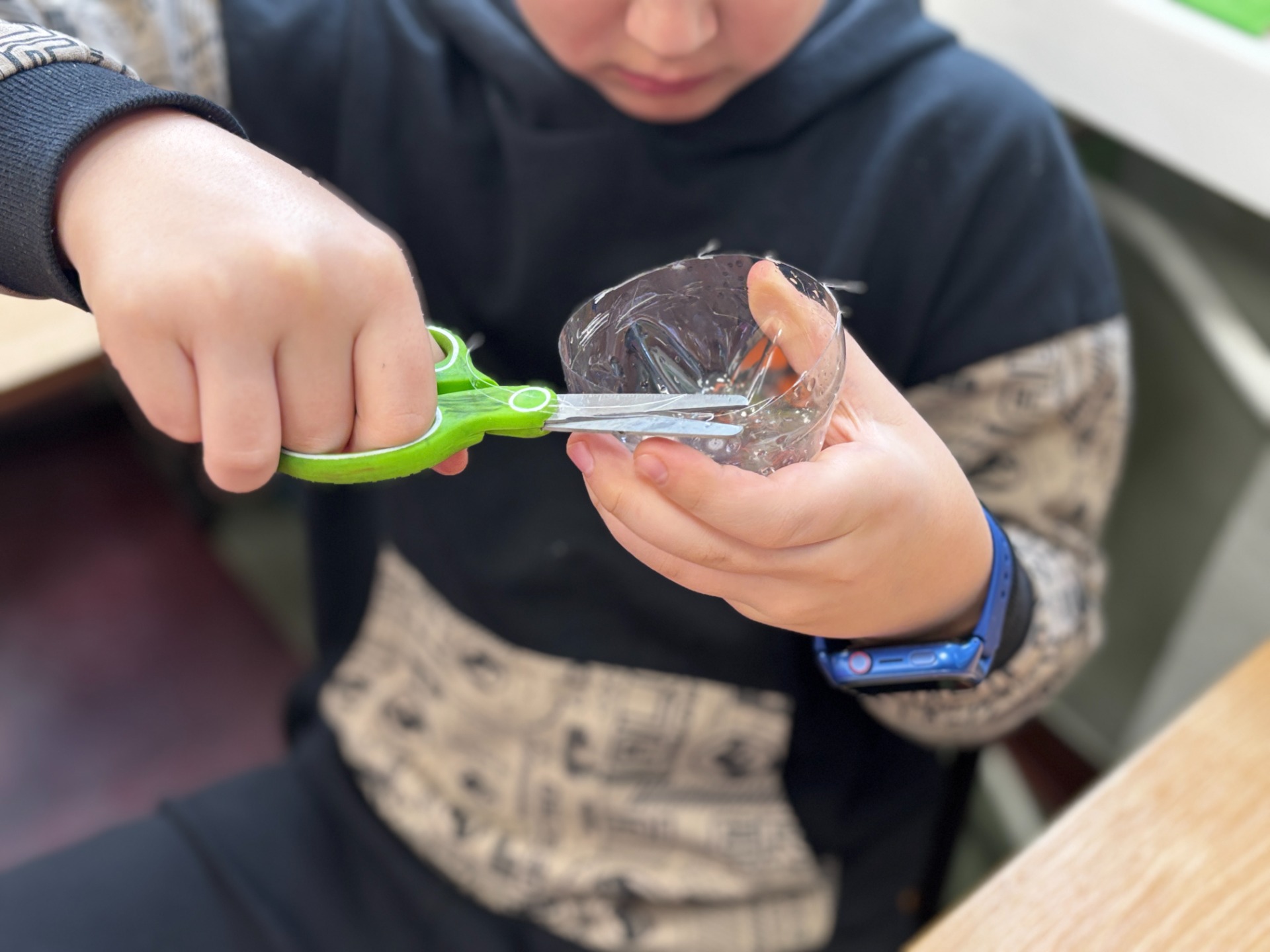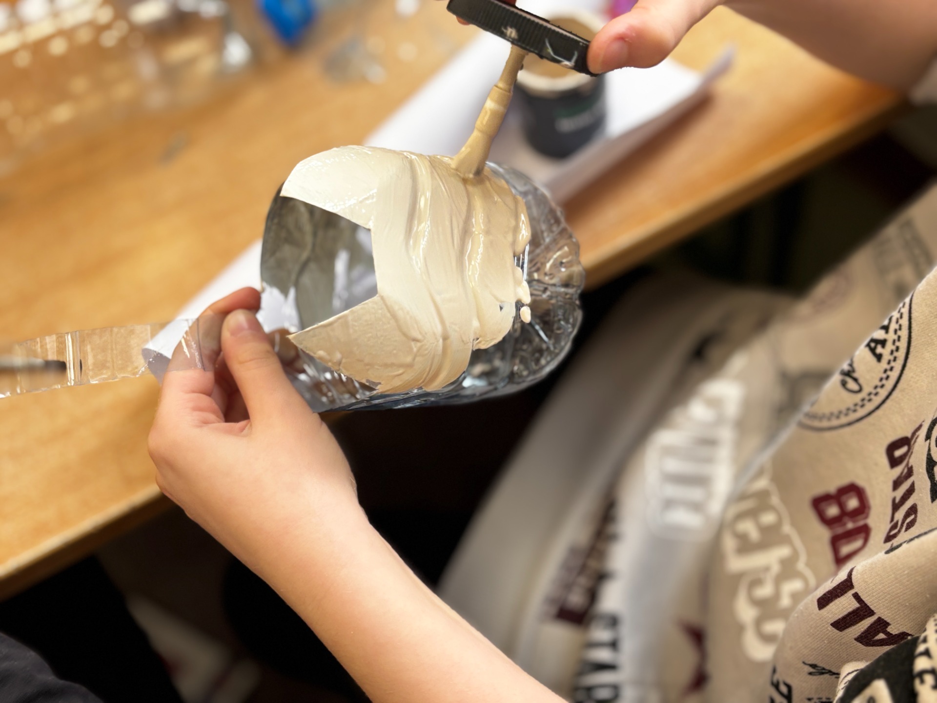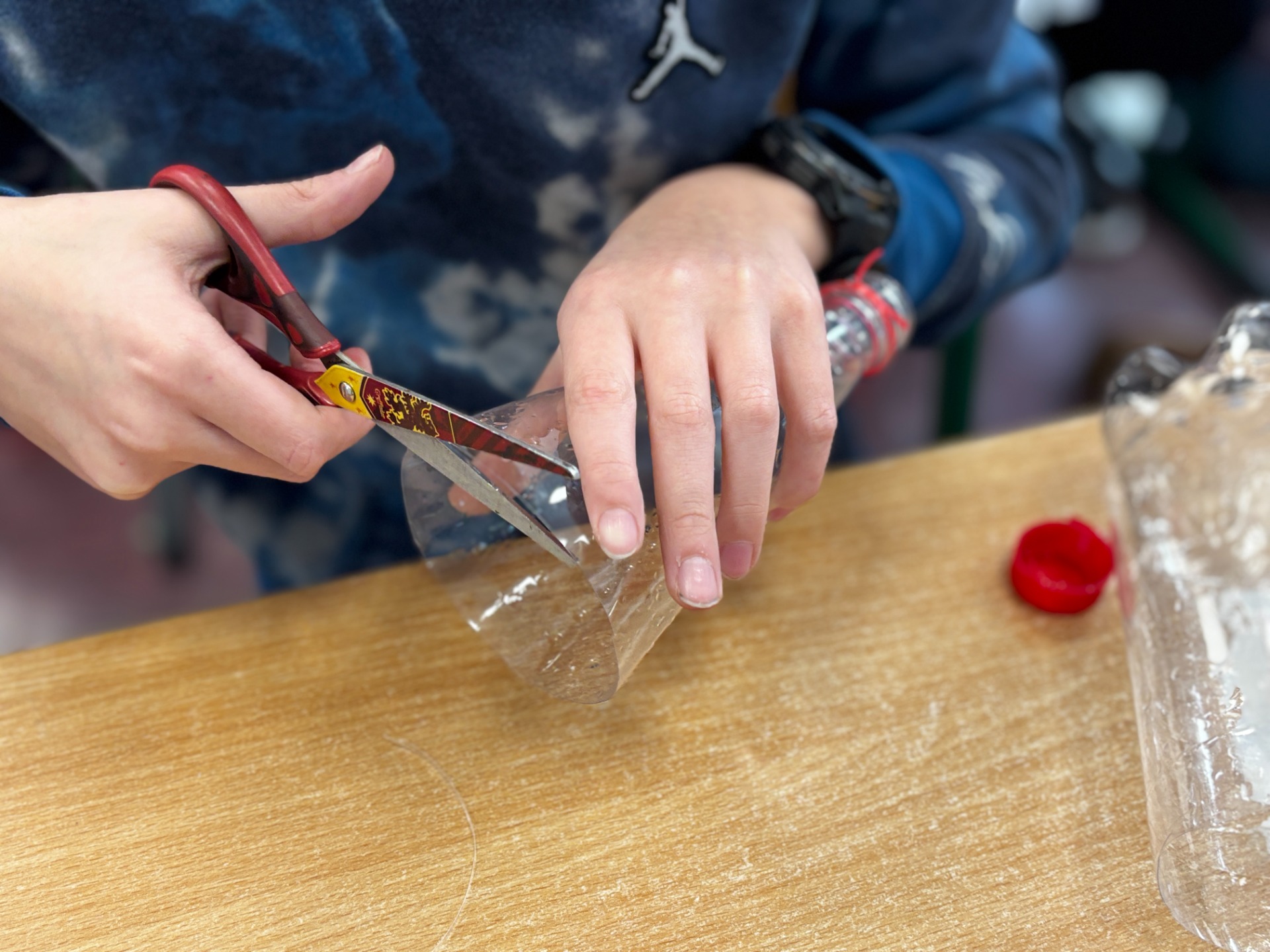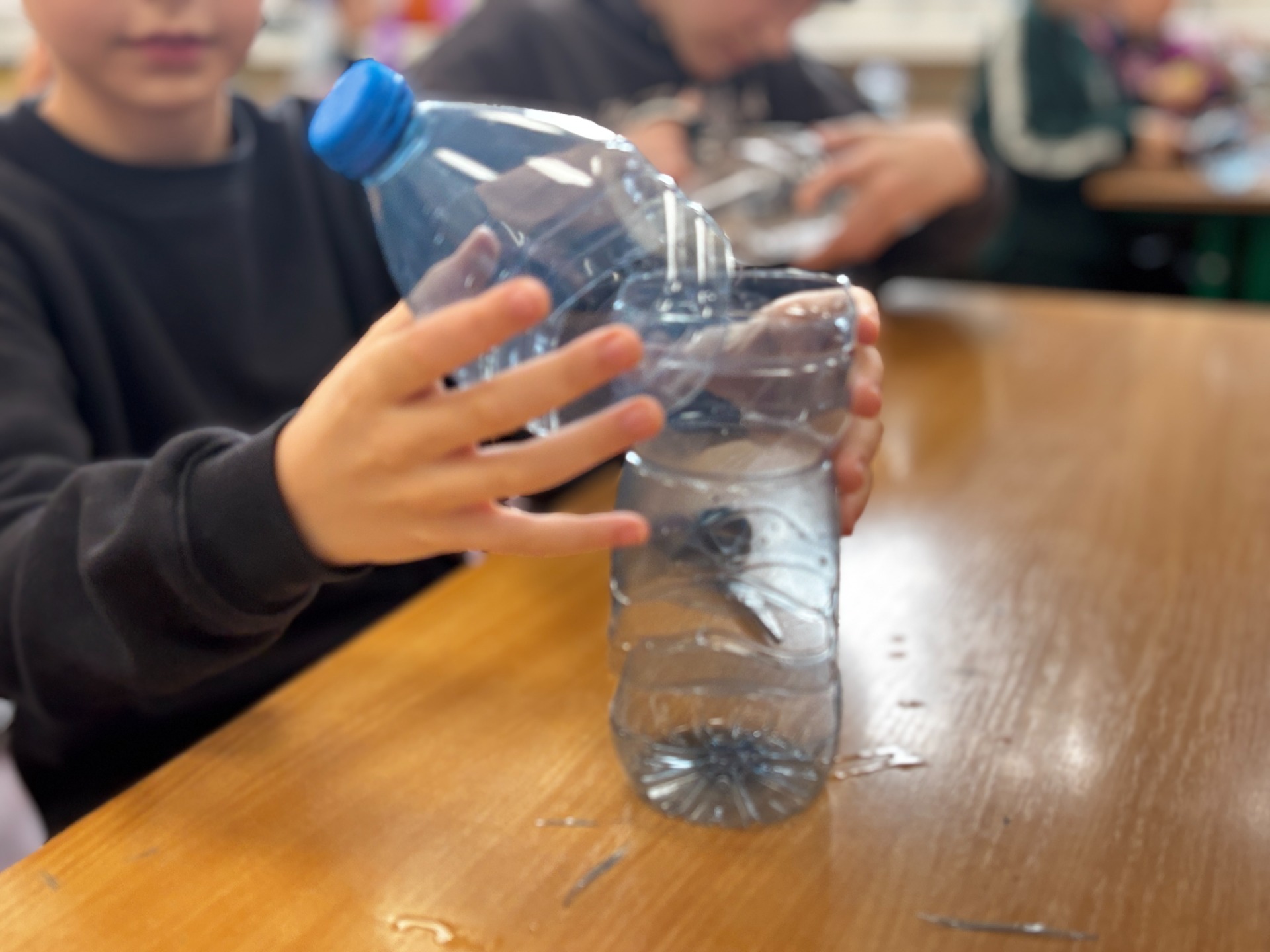 Zanim do akcji wkroczyła ziemia i rośliny, uczniowie zamienili się w projektantów dekoracji recyklingowych. Zgodnie z zasadą „mniej odpadów”, plastikowe butelki dostały drugie życie. Po kilku cięciach i ruchach pędzla, na parapetach zamieszkały: urocze kotki i pieski, barwne stworki, a nawet apetyczne doniczki-lodowe wafelki.