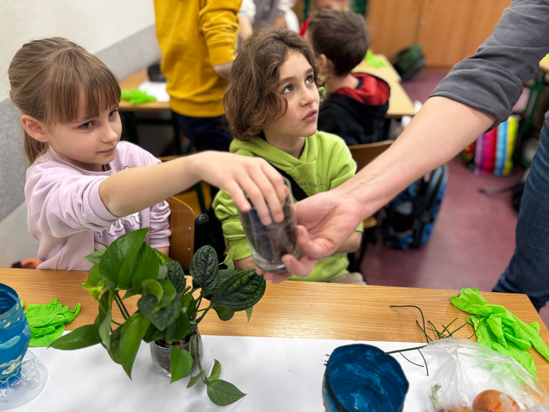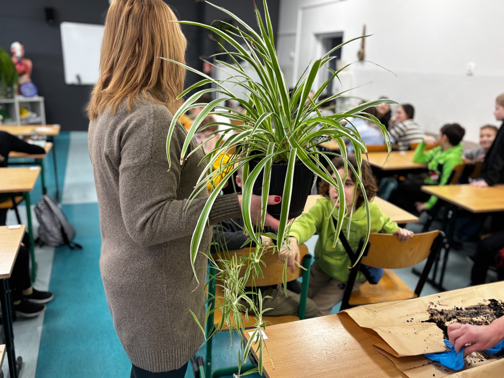 Żeby nasze roślinki miały profesjonalny start, odwiedziliśmy salę biologiczną. Tam poznaliśmy sekrety rozmnażania roślin. Okazało się, że to czysta magia! Uczniowie dowiedzieli się, jak z małego nasionka, cebulki czy szczepki wyczarować bujną zieleń. Warsztaty były tak ciekawe, że nikt nie chciał wychodzić. A przy okazji - pozyskaliśmy szczepki i sadzonki roślin.