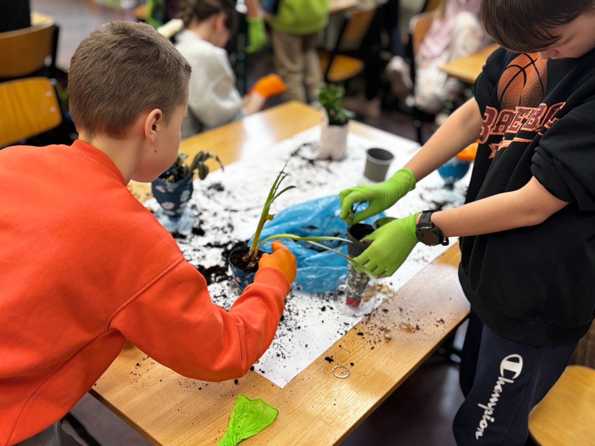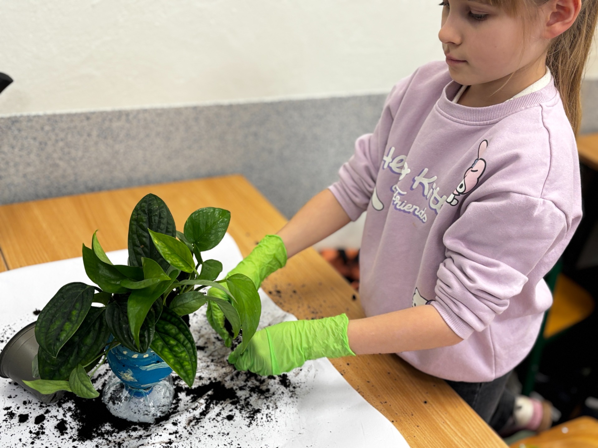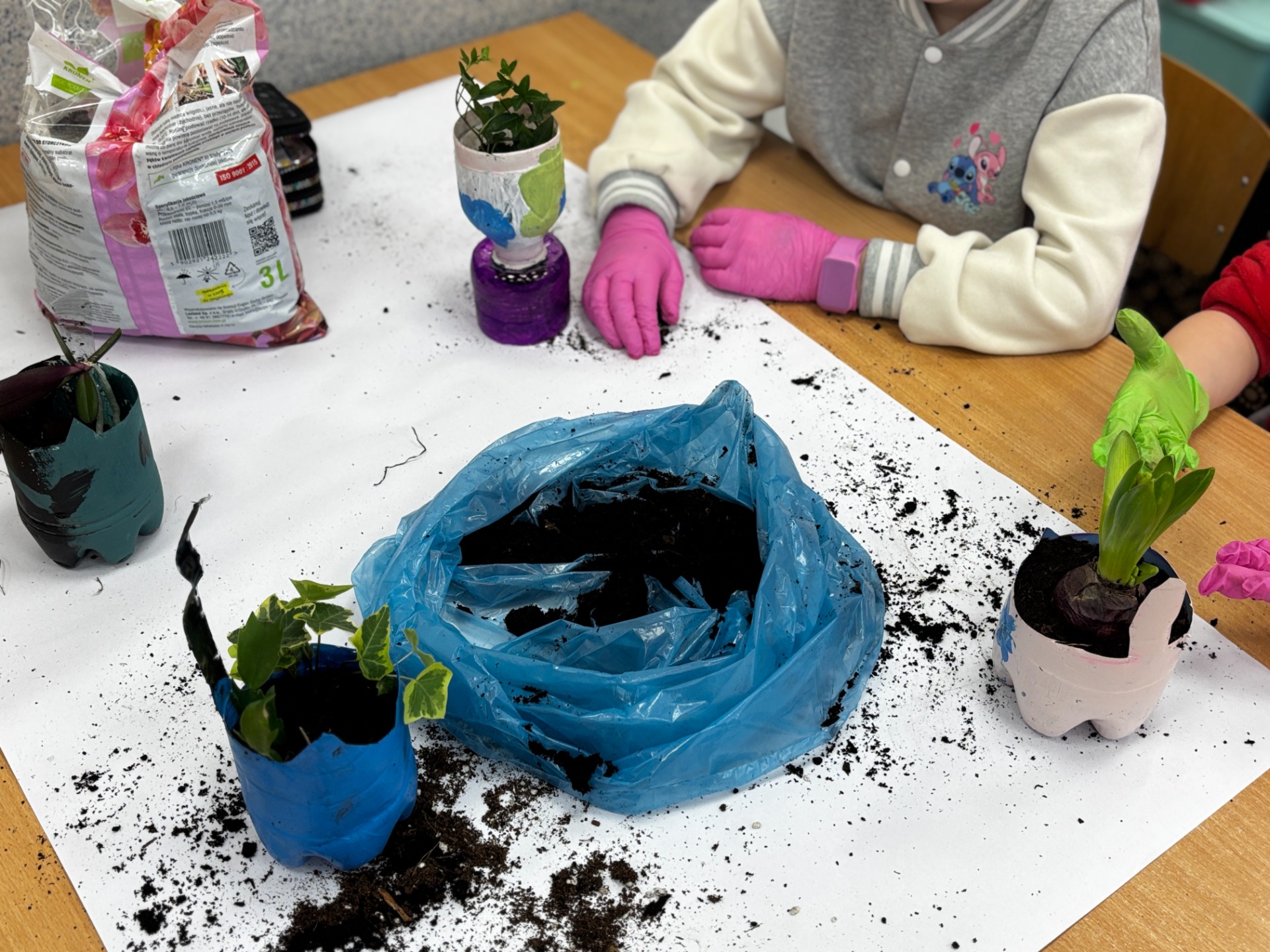 Potem przyszła pora na finałową„brudną robotę”. Stanowiska przygotowane, podłoże dobrane, sadzonki od pani biolog, babć i cioć (oraz te sklepowe) gotowe do startu.