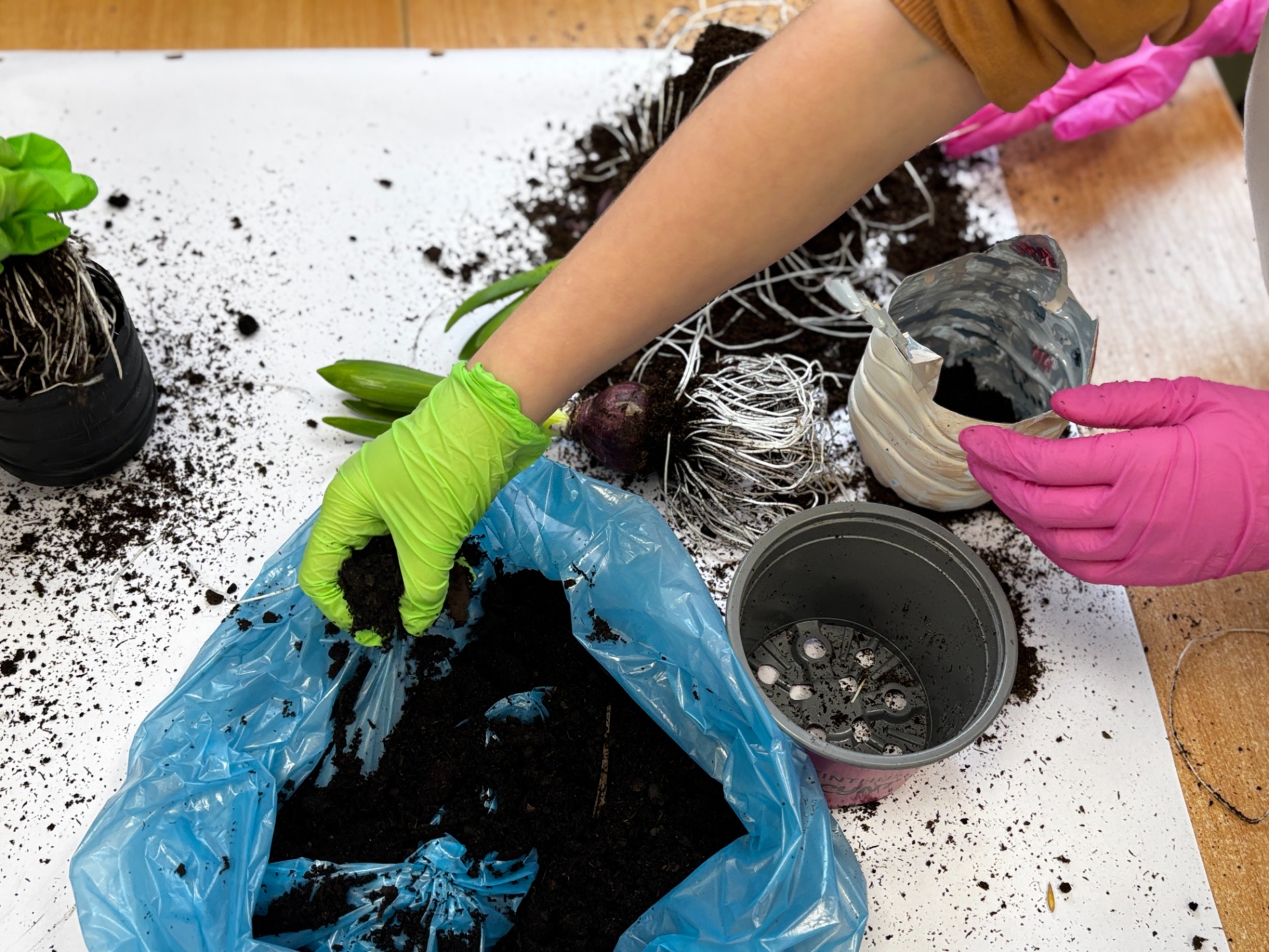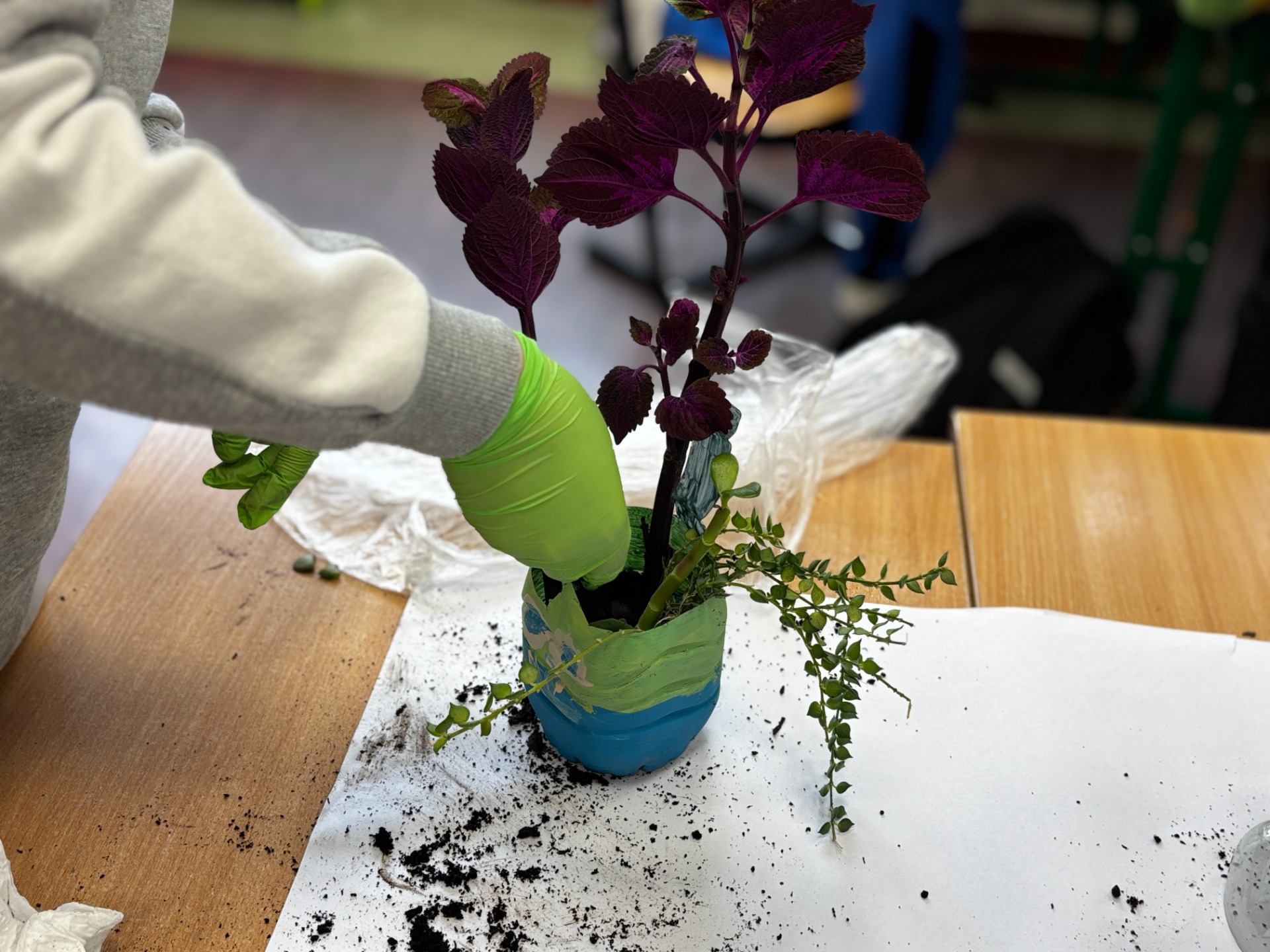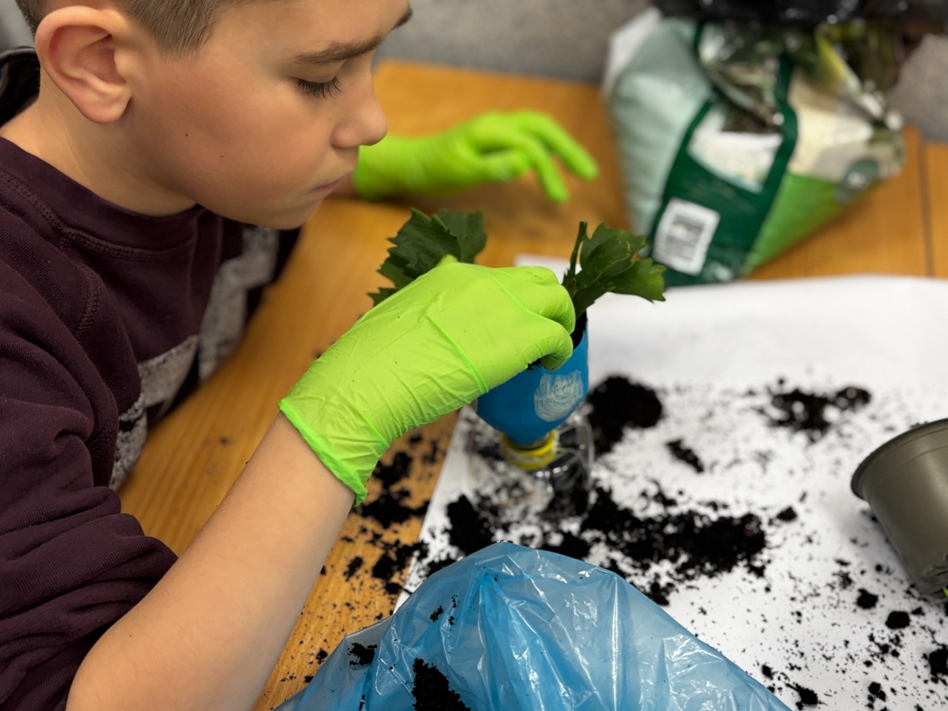 Potem przyszła pora na finałową„brudną robotę”. Stanowiska przygotowane, podłoże dobrane, sadzonki od pani biolog, babć i cioć (oraz te sklepowe) gotowe do startu.