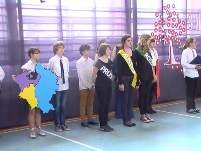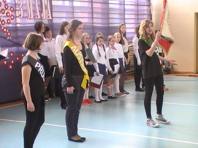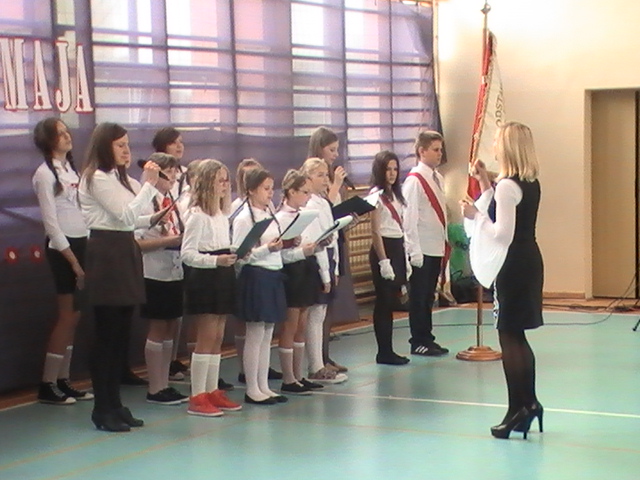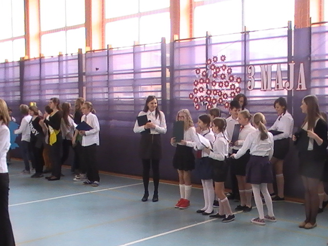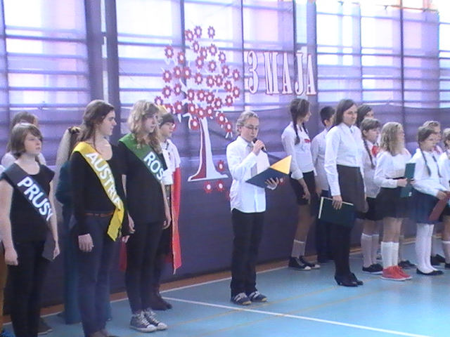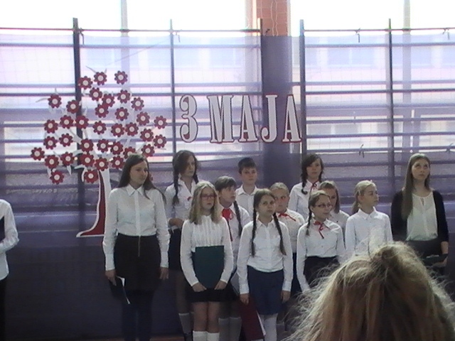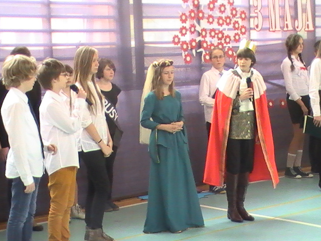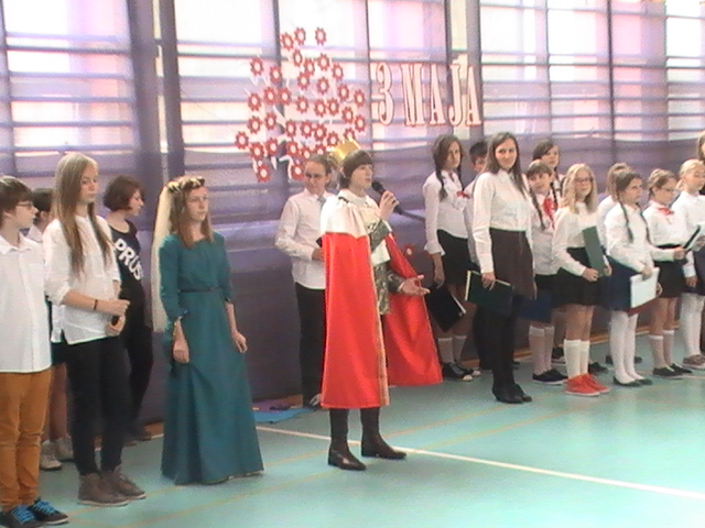 Z tej okazji 30 kwietnia 2013 r. w naszej szkole odbył sie uroczysty apel w wykonaniu uczniów i absolwentów pod kierunkiem p. Edyty Stangret - Nowak (oprawa muzyczna), p. Teresy Marcinkowskiej oraz p. Aleksandry Jędrzejewskiej - "Wywiad z ostatnim królem Rzeczypospolitej". Uroczystość poprzedziło wprowadzenie sztandaru naszej szkoły przez poczet uczniów oraz odśpiewanie hymnu państwowego. Dyrektor szkoły p. Violetta Urban podziękowała absolwentkom szkoły - Wiktorii Szafirowicz oraz Kaudii Grześkowiak, które uświetniają szkolne i miejskie uroczystości, a wicedyrektor szkoły p. Małgorzata Waszczyńska wszystkim występującym oraz nauczycielom, którzy przygotowali montaż słowno - muzyczny.