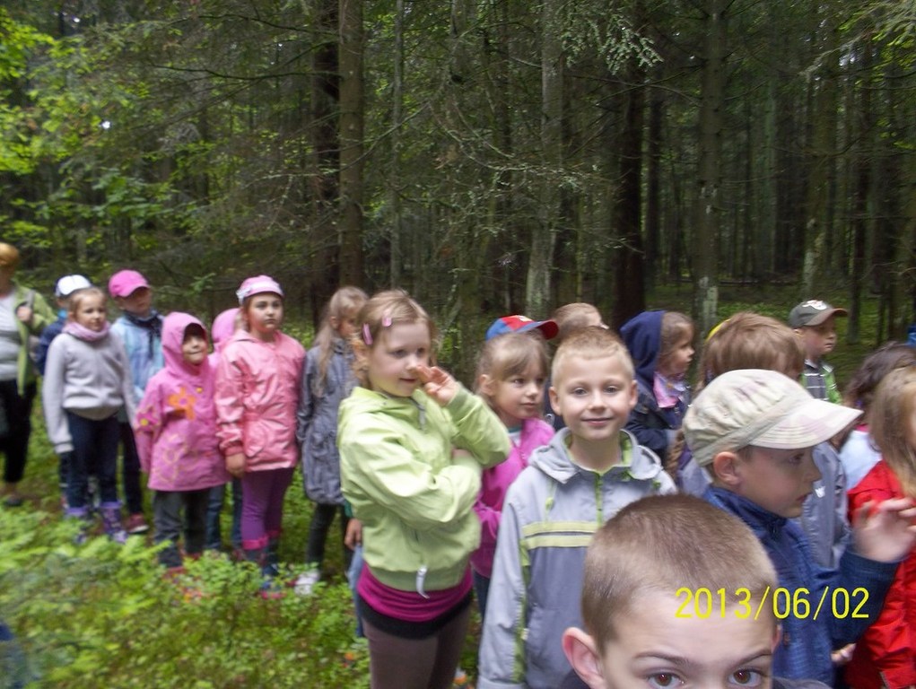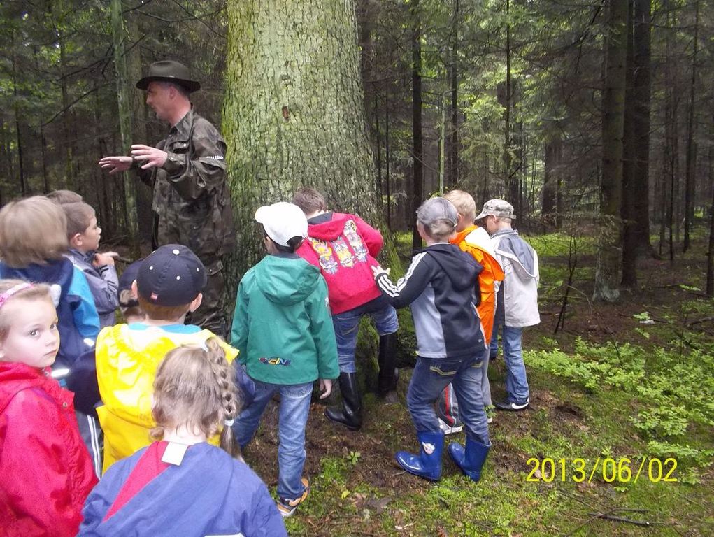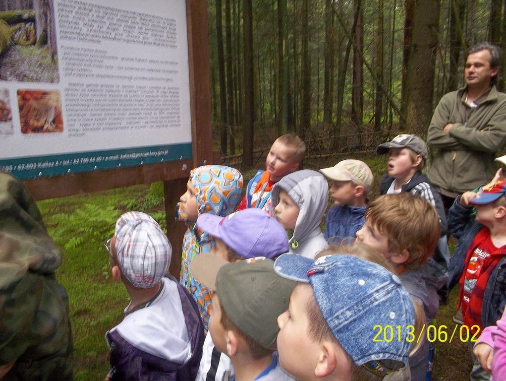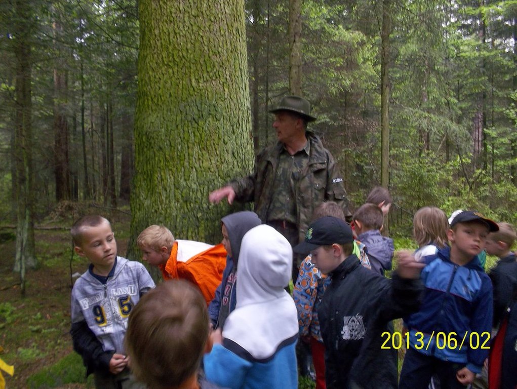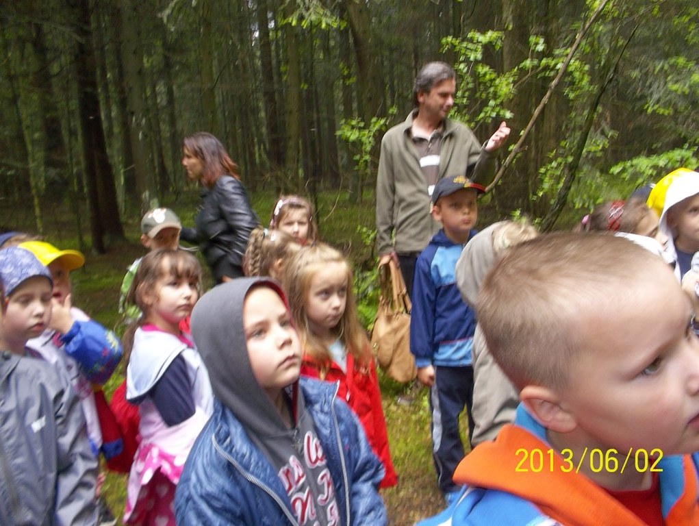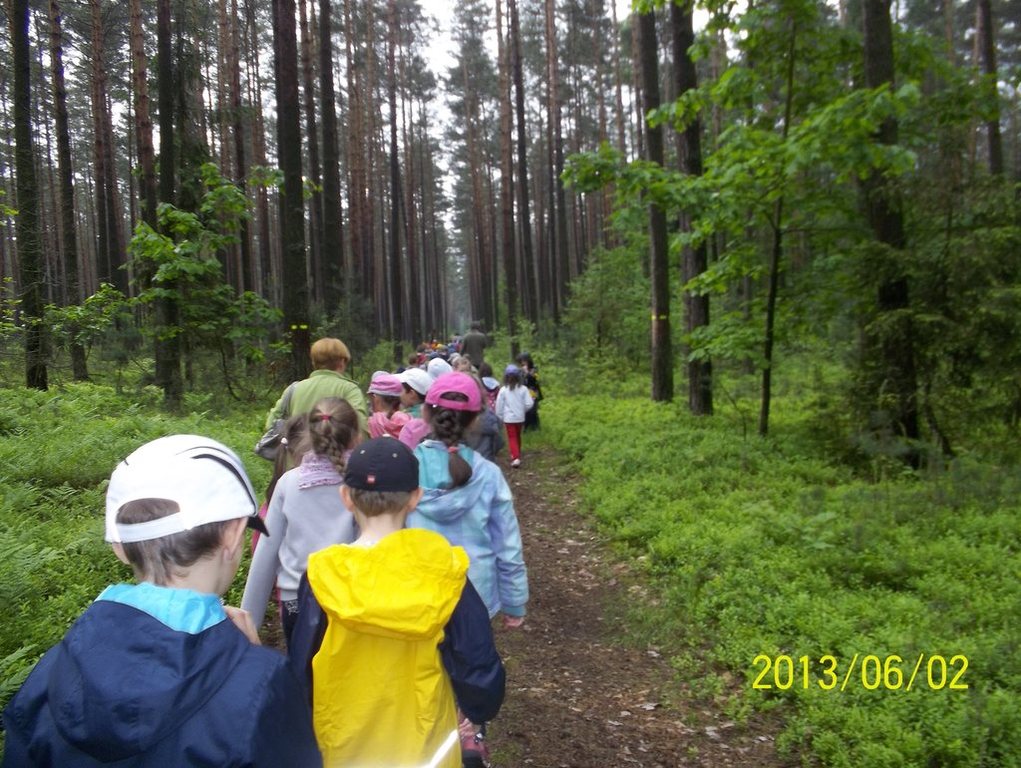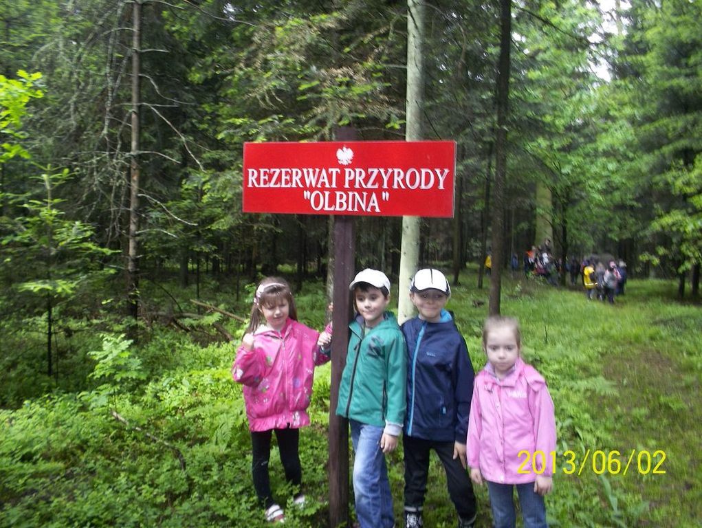 03.06.2013 r. dzieci z oddziałów przedszkolnych podczas wycieczki zorganizowanej z okazji Dnia Dziecka poznały piękny rezerwat leśny „Olbina” w miejscowości Pieczyska. Po ścieżce edukacyjnej z dużą cierpliwością i z pełnym zaangażowaniem oprowadzał przedszkolaków pan leśniczy. Dzieci mile wspominają wycieczkę, wiedzą, co to jest rezerwat, pamiętają jego nazwę i jej pochodzenie, pamiętają też nazwy poznanych drzew, w tym jodły objętej w rezerwacie ochroną. Wymieniają również nazwy zwierząt leśnych. Z radością mówią o znalezionych w lesie śladach zostawionych przez żerującego dzika.