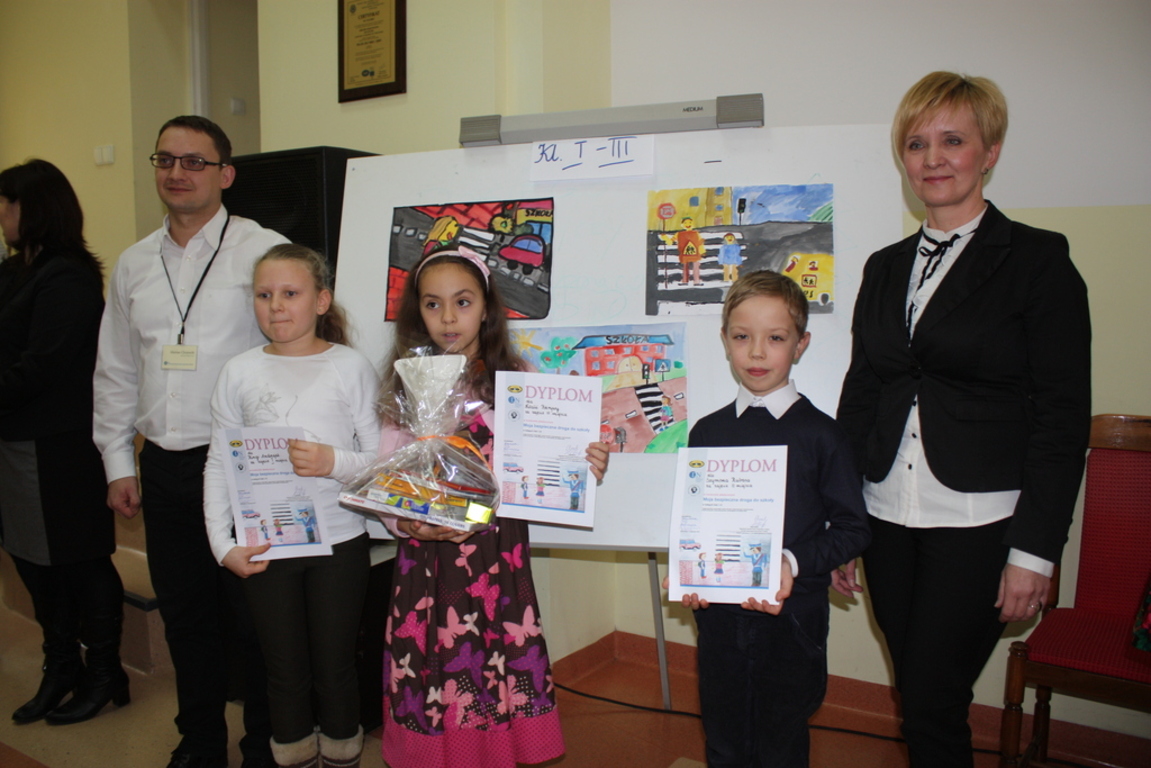 Nie po raz pierwszy uczniowie Szkoły Podstawowej nr 7 w Kaliszu zdobywają laury w konkursach plastycznych. Tym razem naszą dumą stał się uczeń klasy IIb Szymon Rubas. 13 stycznia 2014 r. w Ośrodku Doskonalenia Nauczycieli w Kaliszu odbył się II etap Konkursu Plastycznego pod hasłem „Moja bezpieczna droga do szkoły” dla uczniów klas I – VI szkół podstawowych (zasięg terytorialny: powiat kaliski, powiat ostrowski, powiat pleszewski, powiat jarociński, powiat krotoszyński, powiat ostrzeszowski, powiat kępiński oraz Miasto Kalisz). Organizatorami imprezy byli: Wojewódzki Ośrodek Ruchu Drogowego w Kaliszu, Ośrodek Doskonalenia Nauczycieli w Kaliszu, Szkoła Podstawowa Nr 7 im. Adama Mickiewicza w Kaliszu oraz Szkoła Podstawowa w Brzezinach. Szymon Rubas zdobył II miejsce w kategorii uczniów klas I - III szkół podstawowych. Ponadto uzyskał wyróżnienie w I etapie tego konkursu. Jego praca została umieszczona w „Kalendarzu na rok 2014” promującym bezpieczną drogę do szkoły. Gratulujemy!!