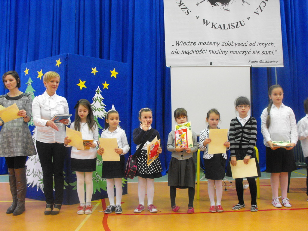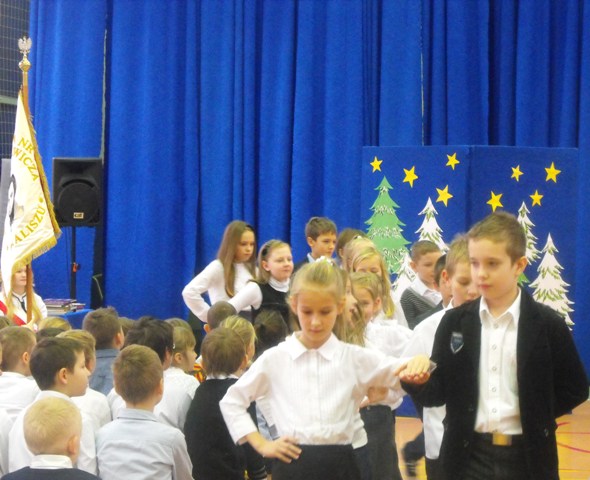 20 grudnia 2013 r. odchodziliśmy Święto Patrona Szkoły. Z tej okazji program artystyczny przygotowali uczniowie kl. 3a i kl.3c pod kierunkiem p. Karoliny Wilk i p. Katarzyny Kaźmierczak. Przybliżyli postać Adama Mickiewicza. Informacje dopełniła prezentacja multimedialna, która obrazowała życie patrona naszej szkoły. Ponadto uczniowie zatańczyli poloneza. Największe zainteresowanie wzbudziła inscenizacja wiersza „Przyjaciele”. Uczniowie wspaniale wcielili się w role prezentując swoje zdolności aktorskie W czasie uroczystości wręczone zostały dyplomy i nagrody laureatom konkursów szkolnych: „Ilustracja do bajki Adama Mickiewicza”, „Najpiękniejsza ozdoba choinkowa” oraz „Konkursu Wiedzy o Świętach Bożego Narodzenia”. Po obejrzeniu części artystycznej uczniowie obiecali częściej sięgać po bajki Adama Mickiewicza, uznali je bowiem za bardzo interesujące.